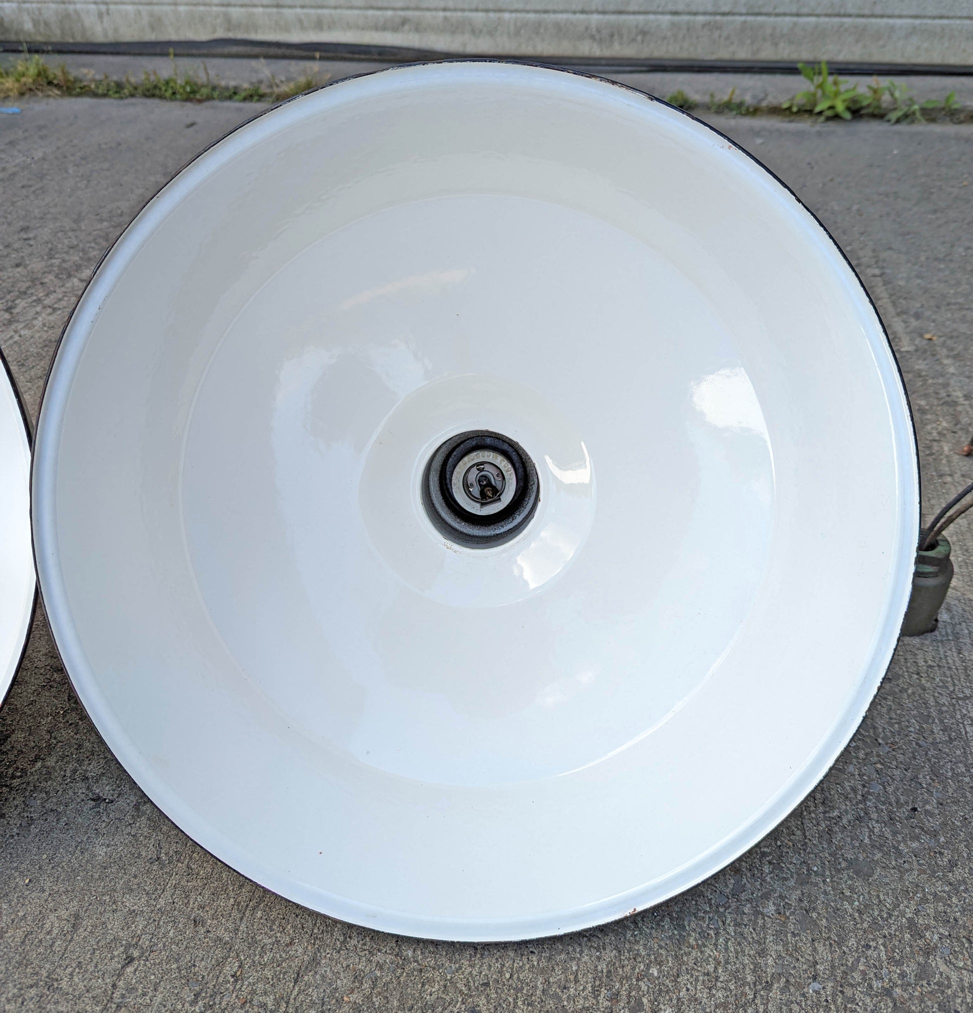 Lot Set of 3 Vintage Antique Old 16" Salvaged Reclaimed Art Deco Factory Industrial Porcelain Enamel Steel Metal Lamp Shade Ceiling Light Cover Fixture