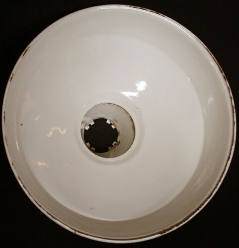 14" Vintage Antique Old Salvaged Reclaimed Art Deco Factory Industrial Porcelain Enamel Steel Metal Lamp Shade Ceiling Light Cover Fixture