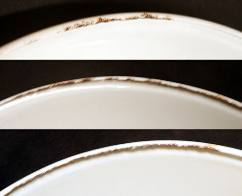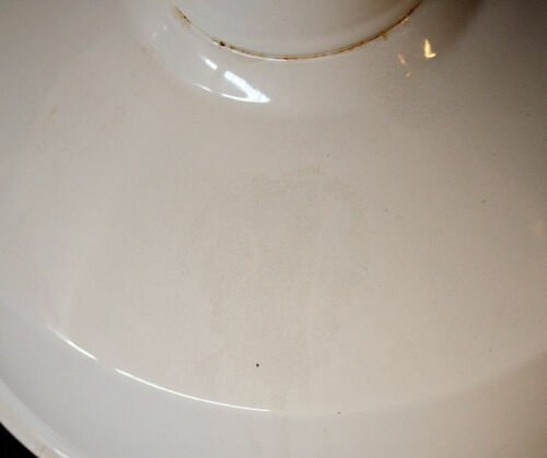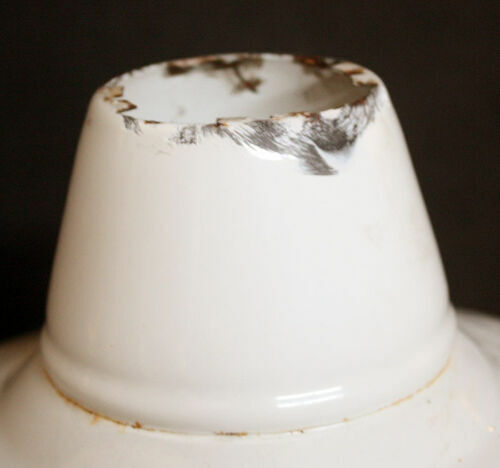 Except for a couple of small spots where porcelain is missing (see last 4 photos), the piece is in excellent condition. There are no breaks, cracks, dents, gouges, or weak spots. The spots of missing porcelain could be left alone or even masked using some high-gloss, white paint.