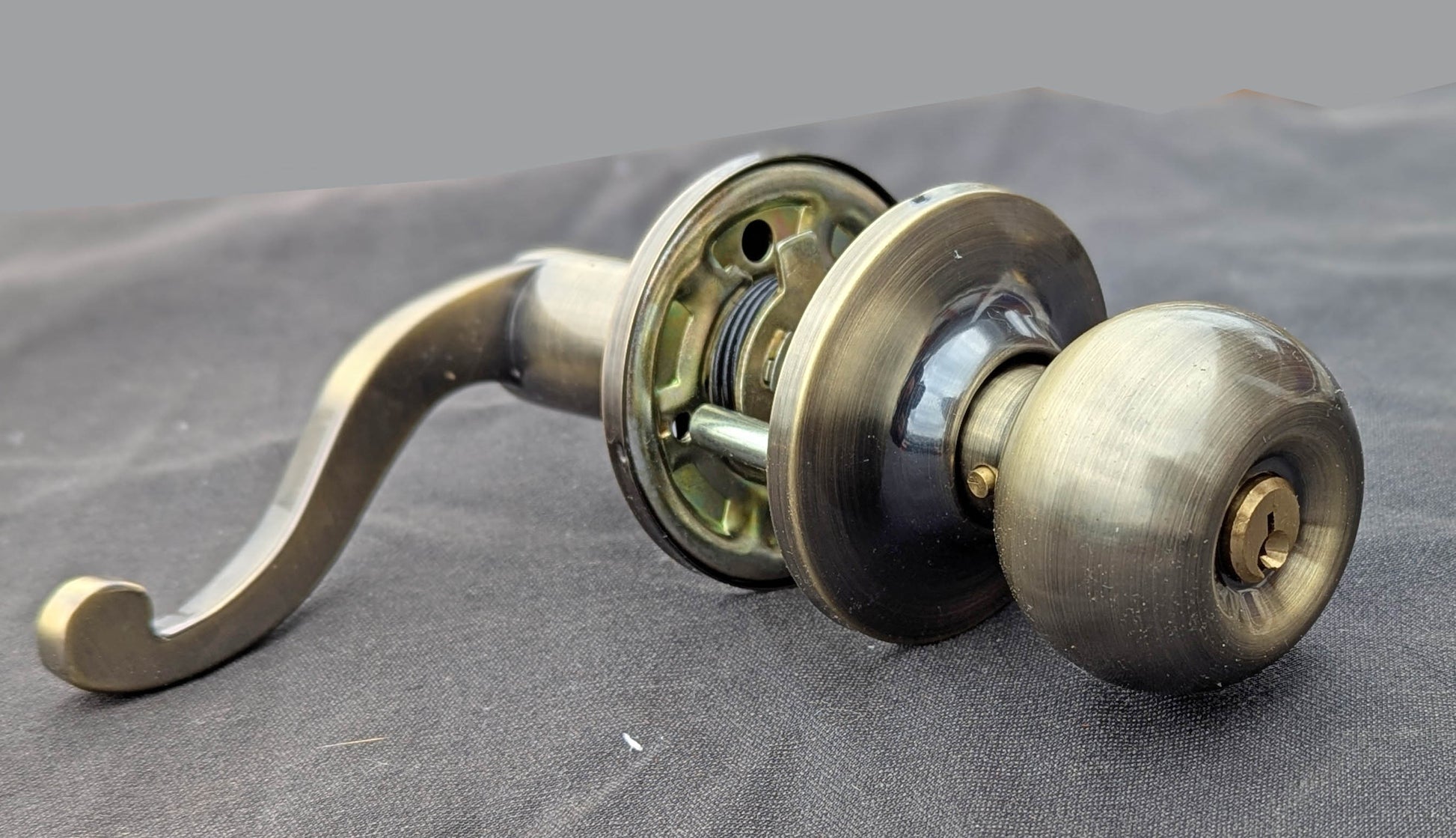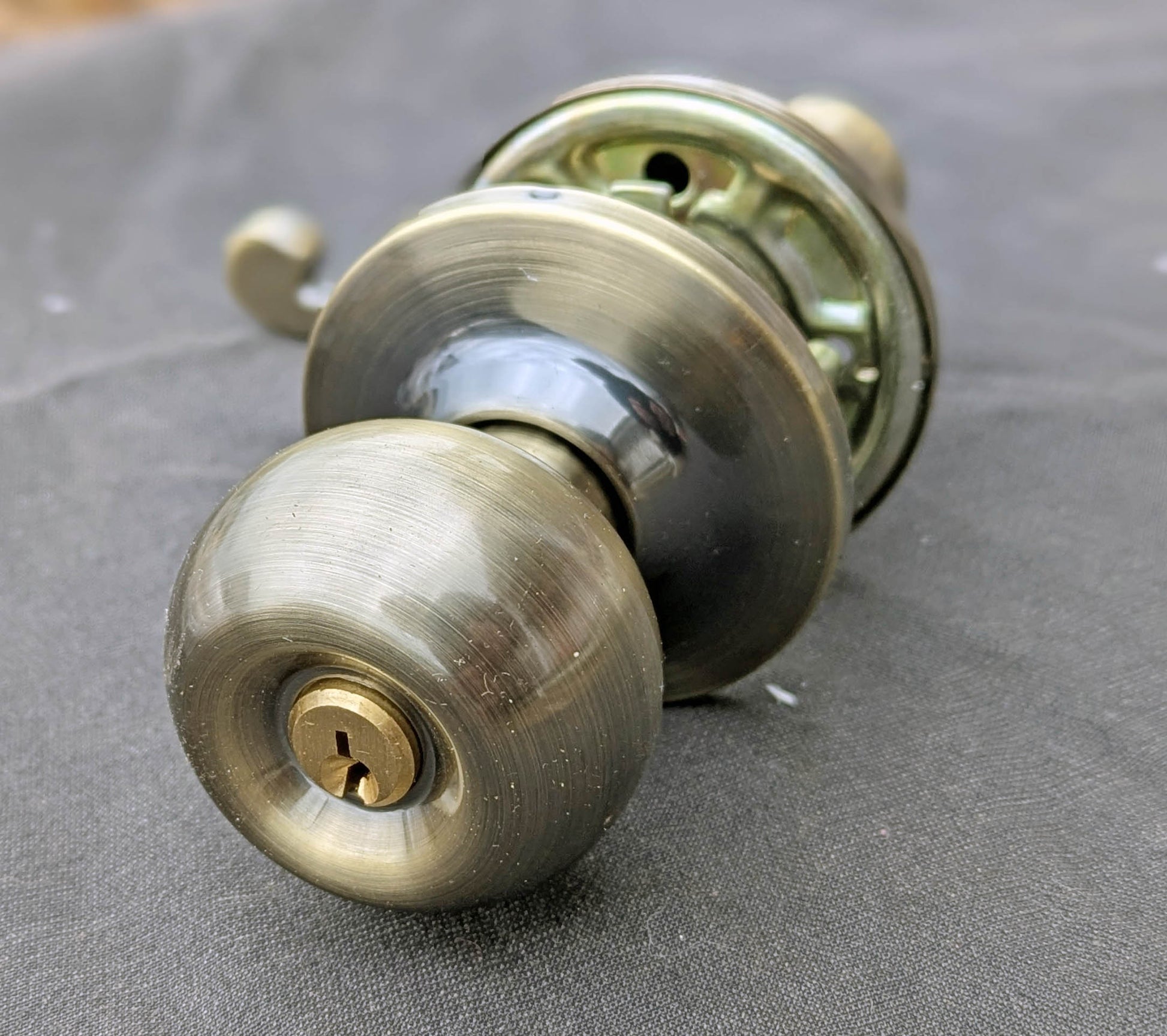 Vintage NOS New Old Stock Modern "Yale" Interior Exterior Entry Keyed Door Lock Lockset Knob Lever Plates Antique Aged Brass Finish 2 Keys