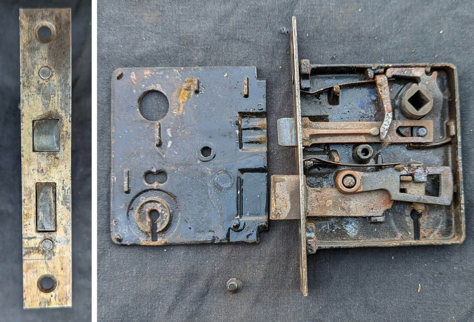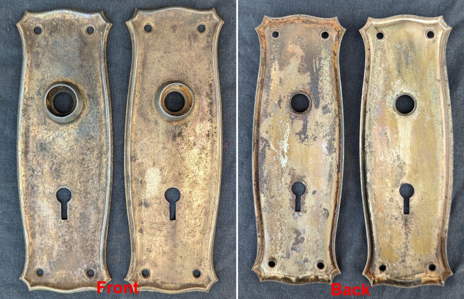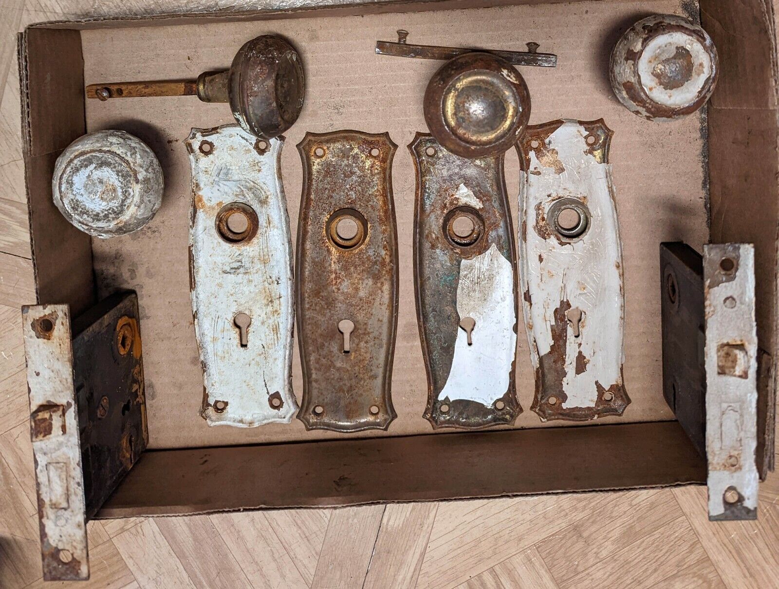 2 available Antique Vintage Old Reclaimed Salvaged Brass Steel Interior Door Lockset Knob Plate Lock