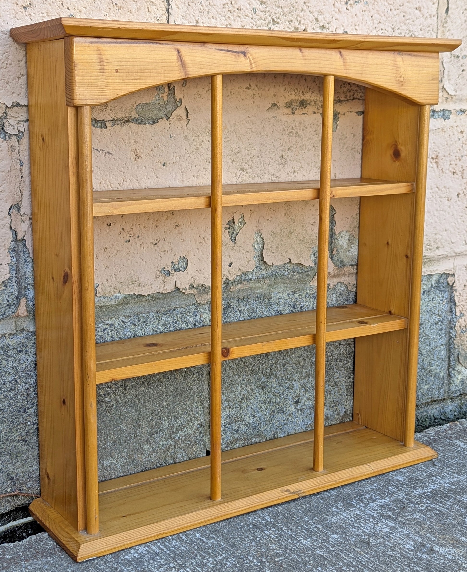 The shelf is in great condition! There are some light nicks and scratches here and there but there are no broken or cracked joints, gouges, rot, warp, or any other serious issues.