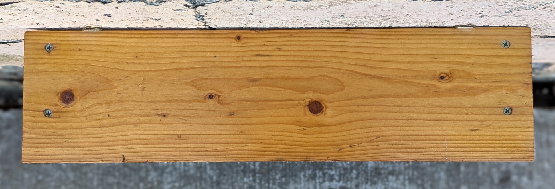 Lovely, solid wood, wall shelf salvaged from Northeastern PA. The shelf is made of solid Pine. It retains its original stain.
