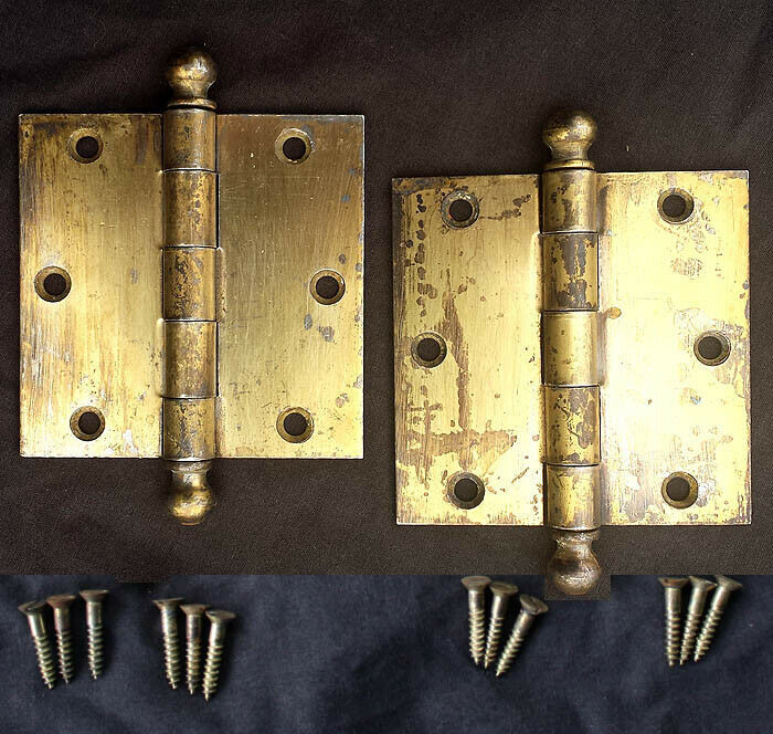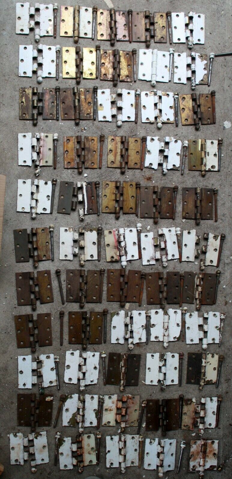 28 available CLEAN Pair 3.5x3.5 Antique Vintage Old Reclaimed Salvaged Brass Steel Interior Door Hinges