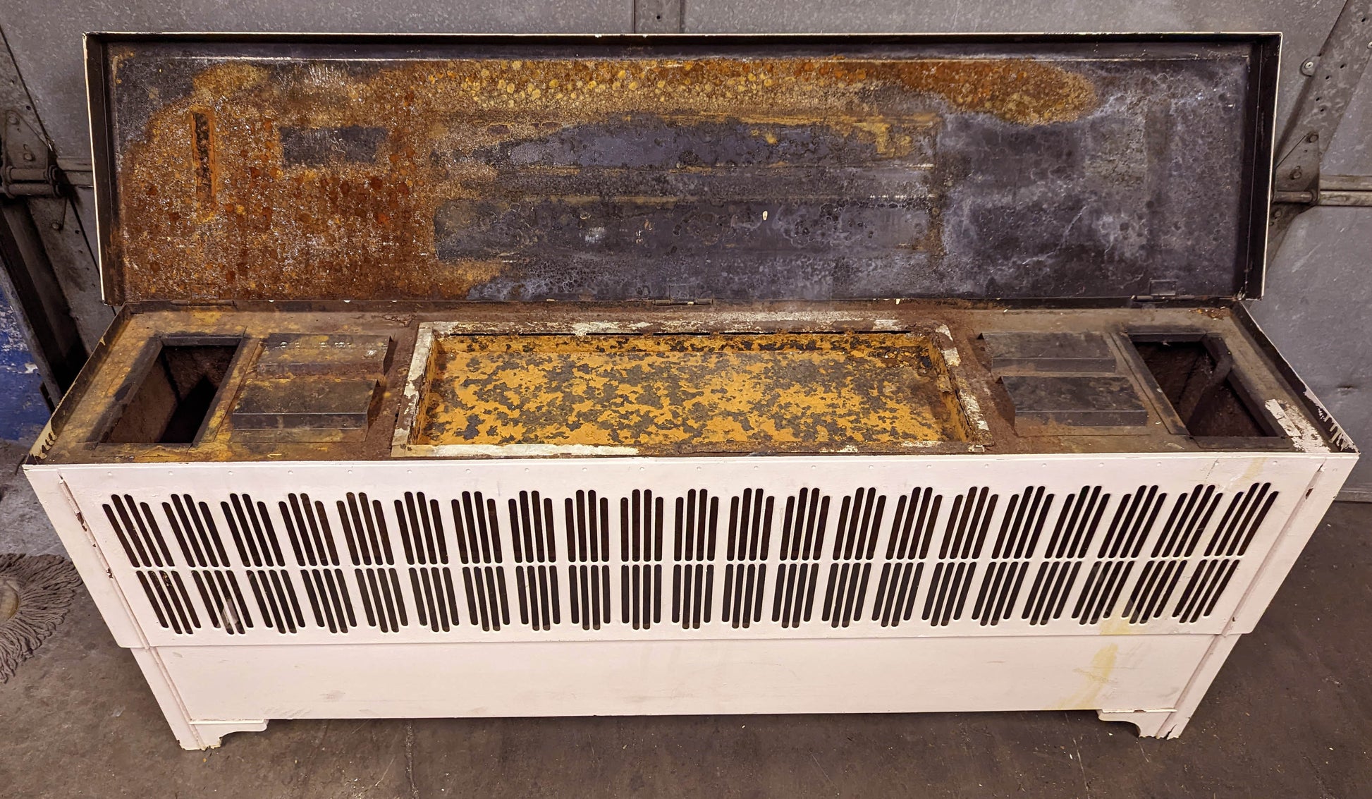 2 available 60"Wx23"H Antique Vintage Old Salvaged Reclaimed Art Deco Style Steel Metal Radiator Heater Cover Case Cabinet Box Humidifier