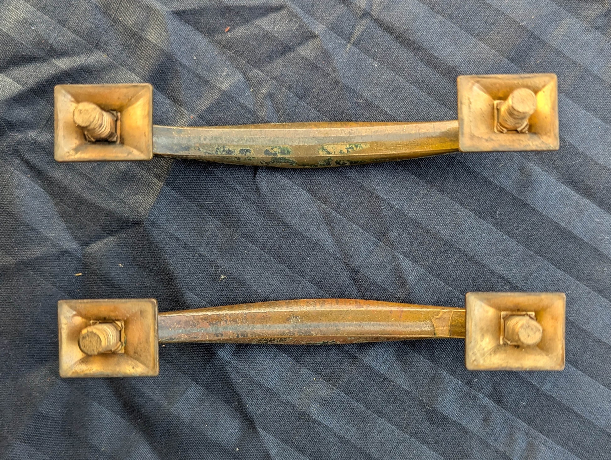 The beauty of their design is only enhanced by a dark, rich patina. If you prefer your hardware bright and shiny, all you'll need is some "Brasso" and #0000 steel wool.