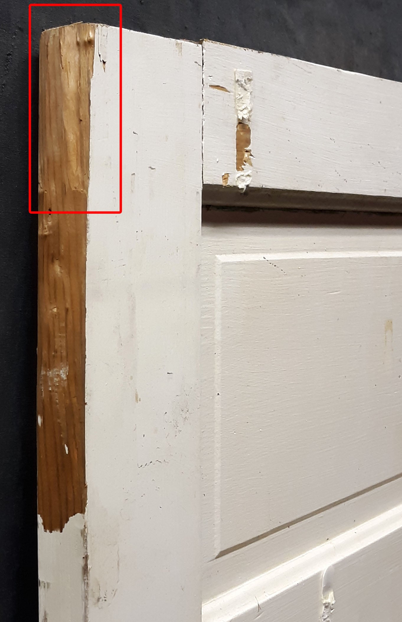 Uneven Height: The height and height of the door was unevenly cut by 3/8". The cuts were most likely made to compensate for a warped floor or sagging foundation. We could cut the door to an even height/width, or cut it narrower/shorter, or even build it up to be wider/taller--message us for a quote.