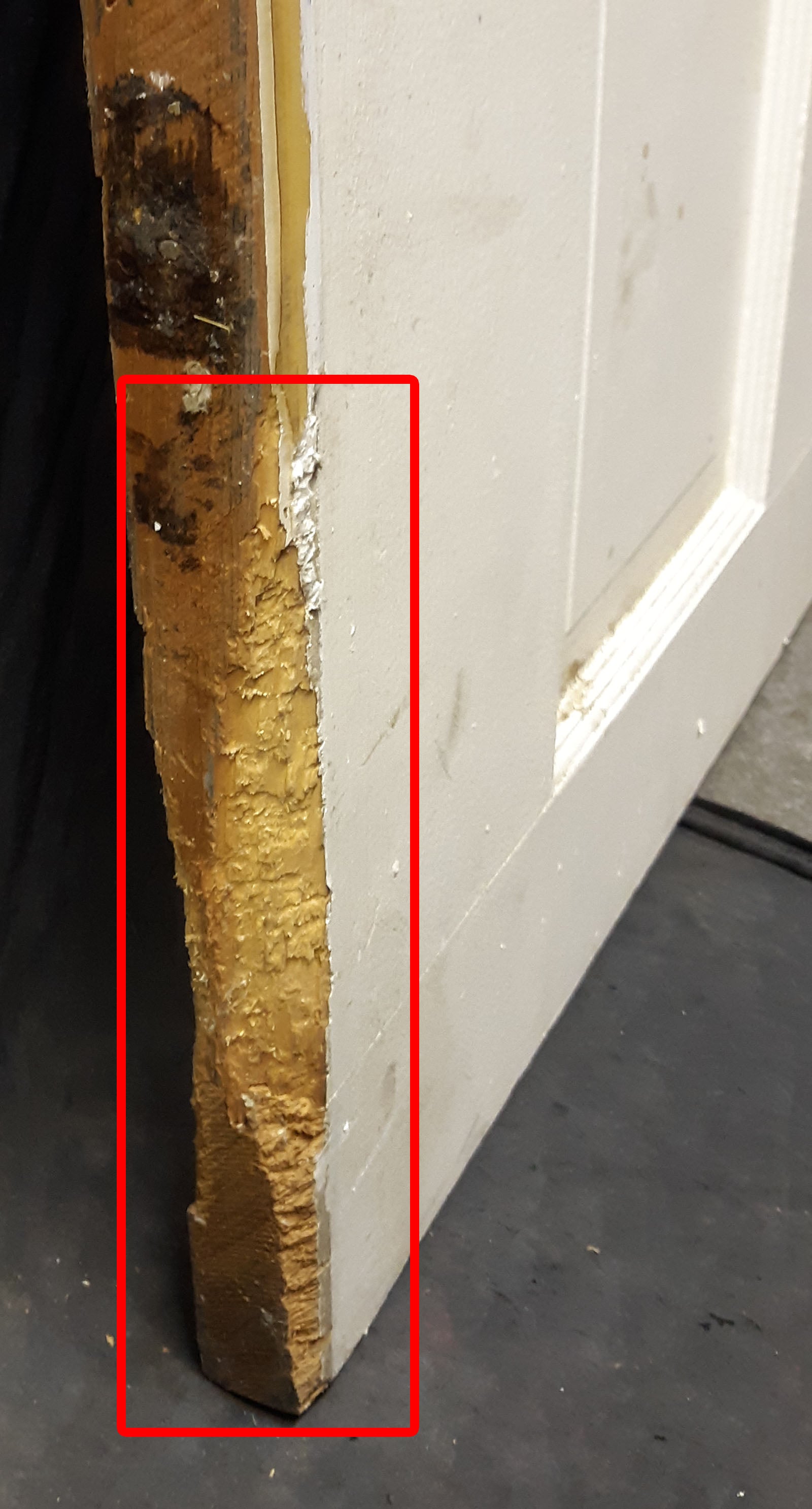 Uneven Width: The width was unevenly cut by 1/4". The cuts were most likely made to accommodate a warped floor or sagging foundation. We could cut the door to an even height/width, cut it narrower/shorter or even build it up to make it taller/wider--message us for a quote.