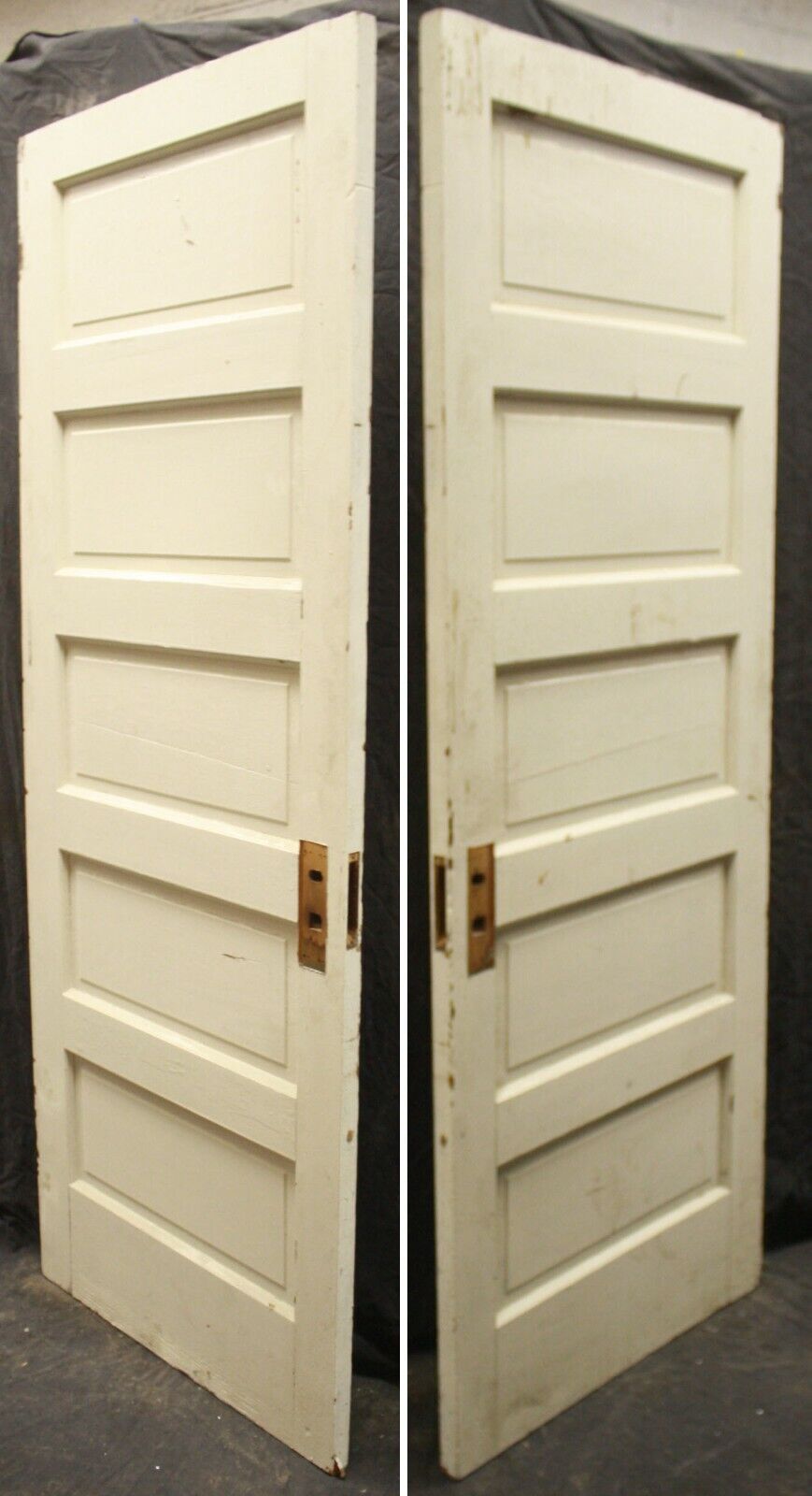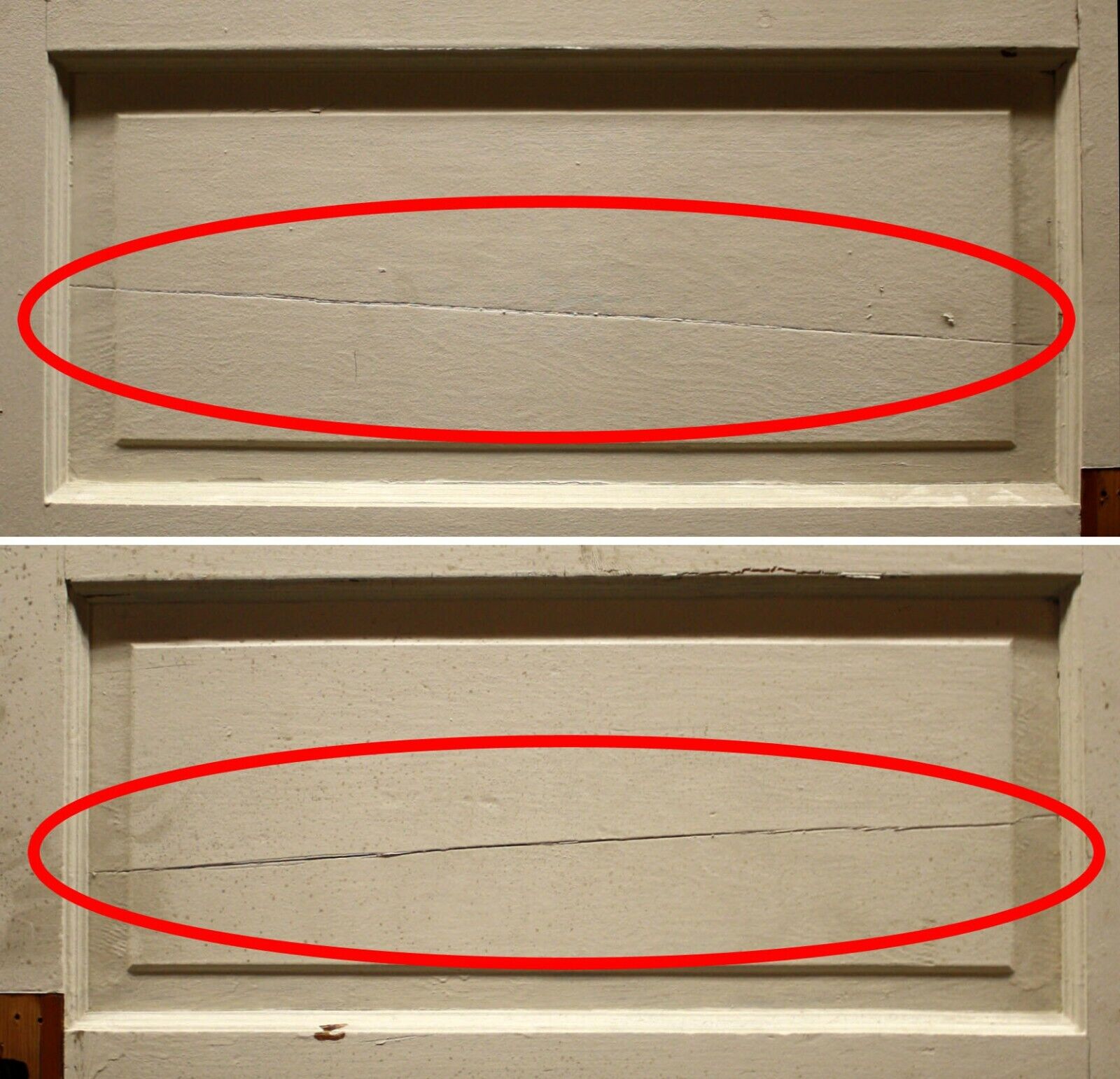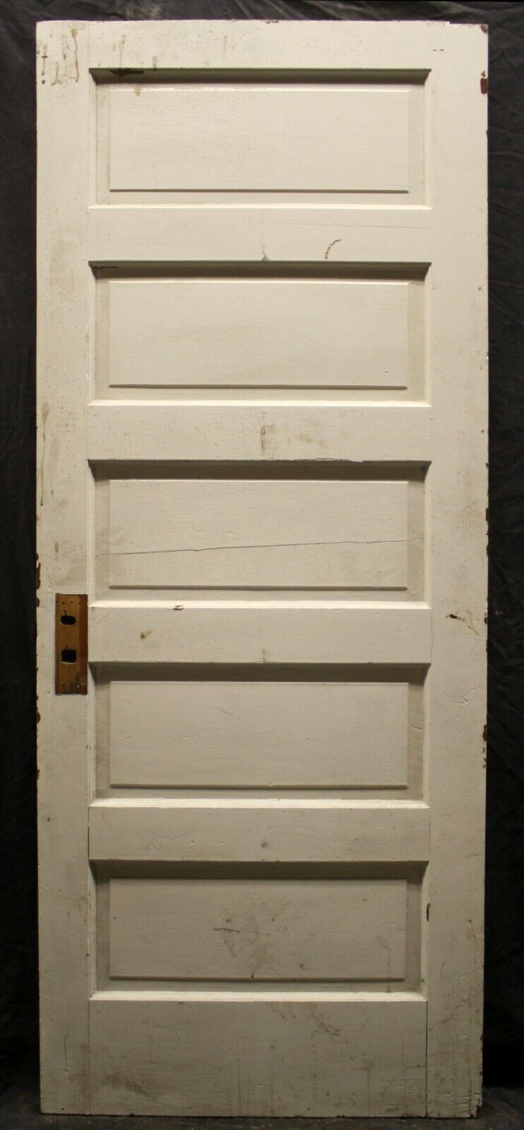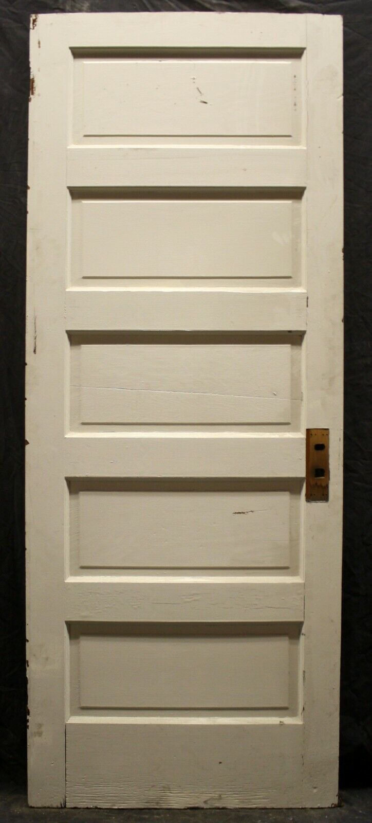 Condition: Considering the door is well over 100 years old, it is strong, sturdy and in great condition. It only has nicks and scratches, but no broken or cracked joints or any other serious issues. The worst damage on this door is a small break on the bottom corner of the interior lock-stile (see last photo). The door's middle panel is cracked. (see 4th panel). Most of the blemishes that it has will disappear after sanding, prior to refinishing or repainting, and whatever remains will be subtle, "character marks".
