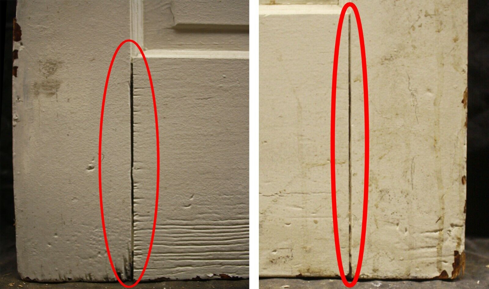 The door has an 1/8" gap (see 5th photo). This is not a serious issue and the doors can still be installed and used for decades without the gaps widening. However, we could close the gap using clamps and reinforce/secure the corners using modern glue and some dowels (wooden joints)--message us for a quote.
