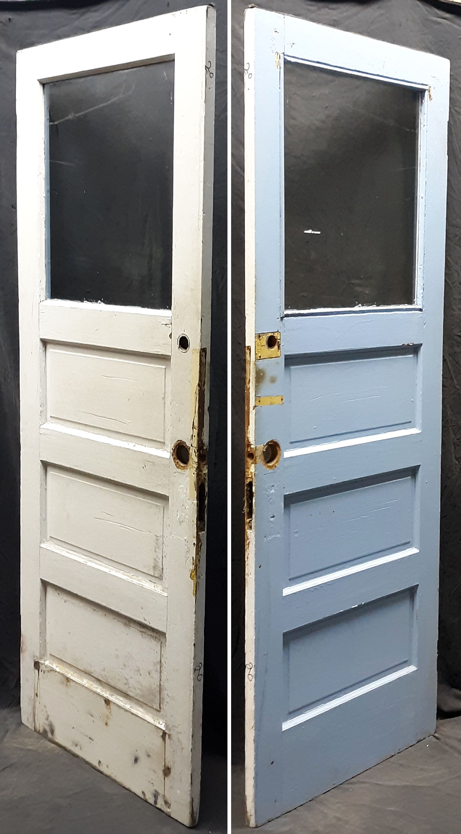 Condition: The door is strong, sturdy, and in great condition. It only has nicks and scratches, but no rot, warp, broken or cracked joints, or any other serious issues. The door has a small break on the bottom corner of the interior hinge-stile. (see last photo)