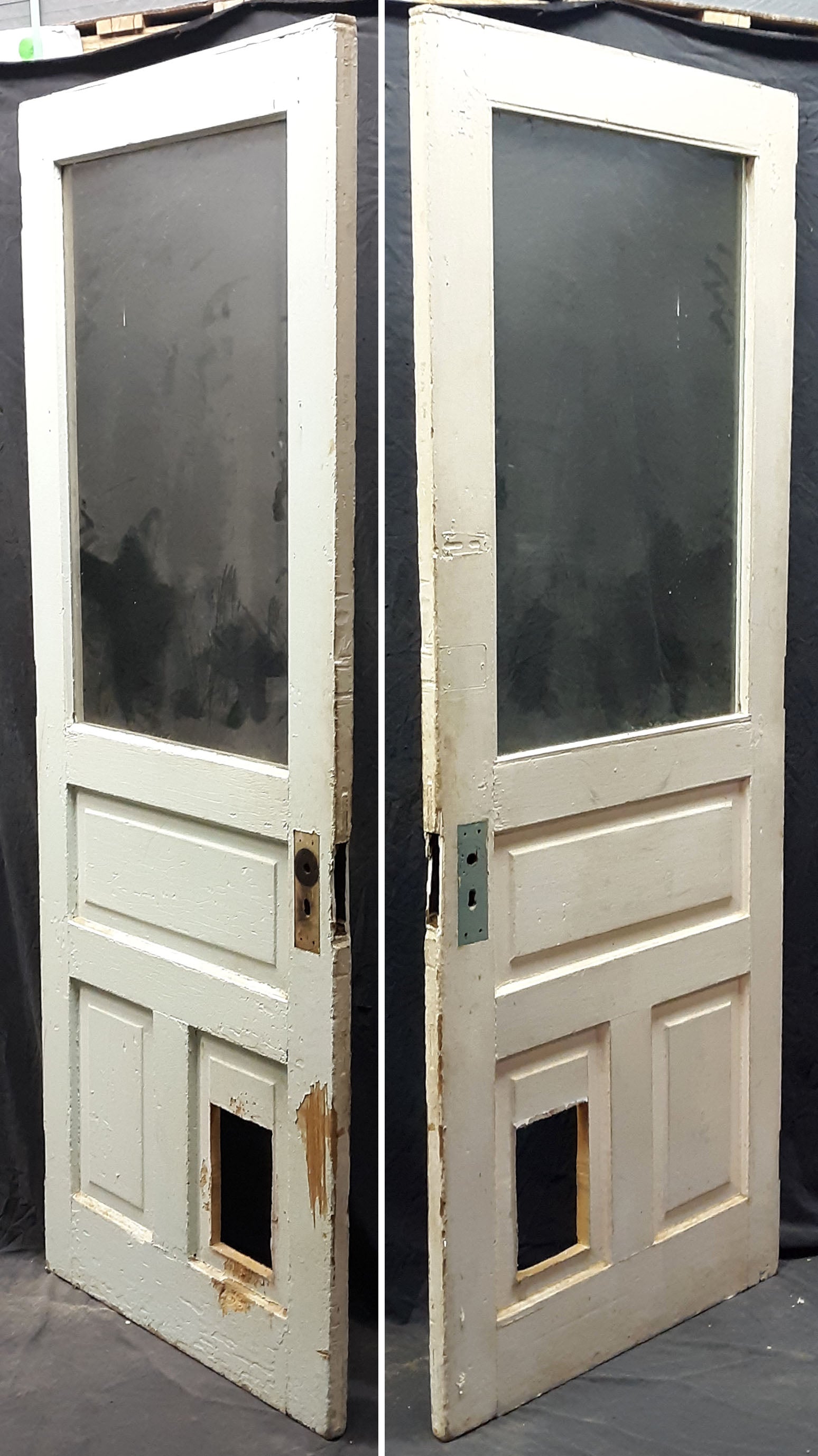 The door has a doggy door installed in one of the bottom panels, we could remove the doggy door and restore the panel to what it originally use to look like--message us for a quote.