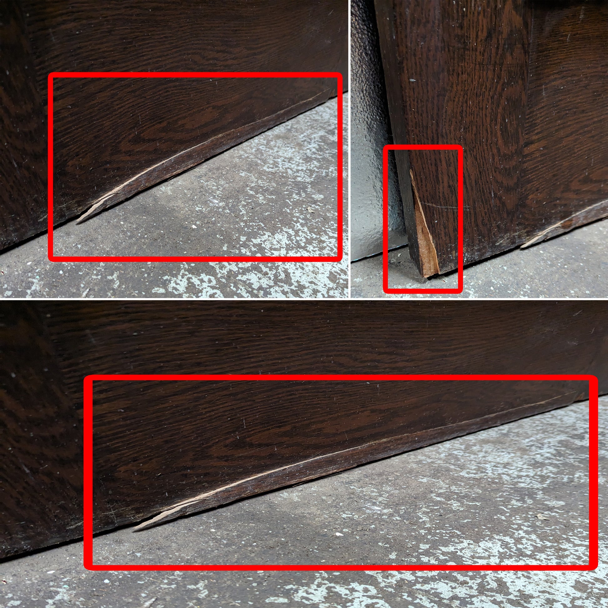 Condition: Considering the door is well over 100 years old, it is strong, sturdy and in great condition. It only has nicks and scratches, but no broken or cracked joints, gouges or any other serious issues. The door has a few small breaks in the veneer (see last photo). Most of the blemishes that it has will disappear after sanding, prior to refinishing or repainting, and whatever remains will be subtle, "character marks".