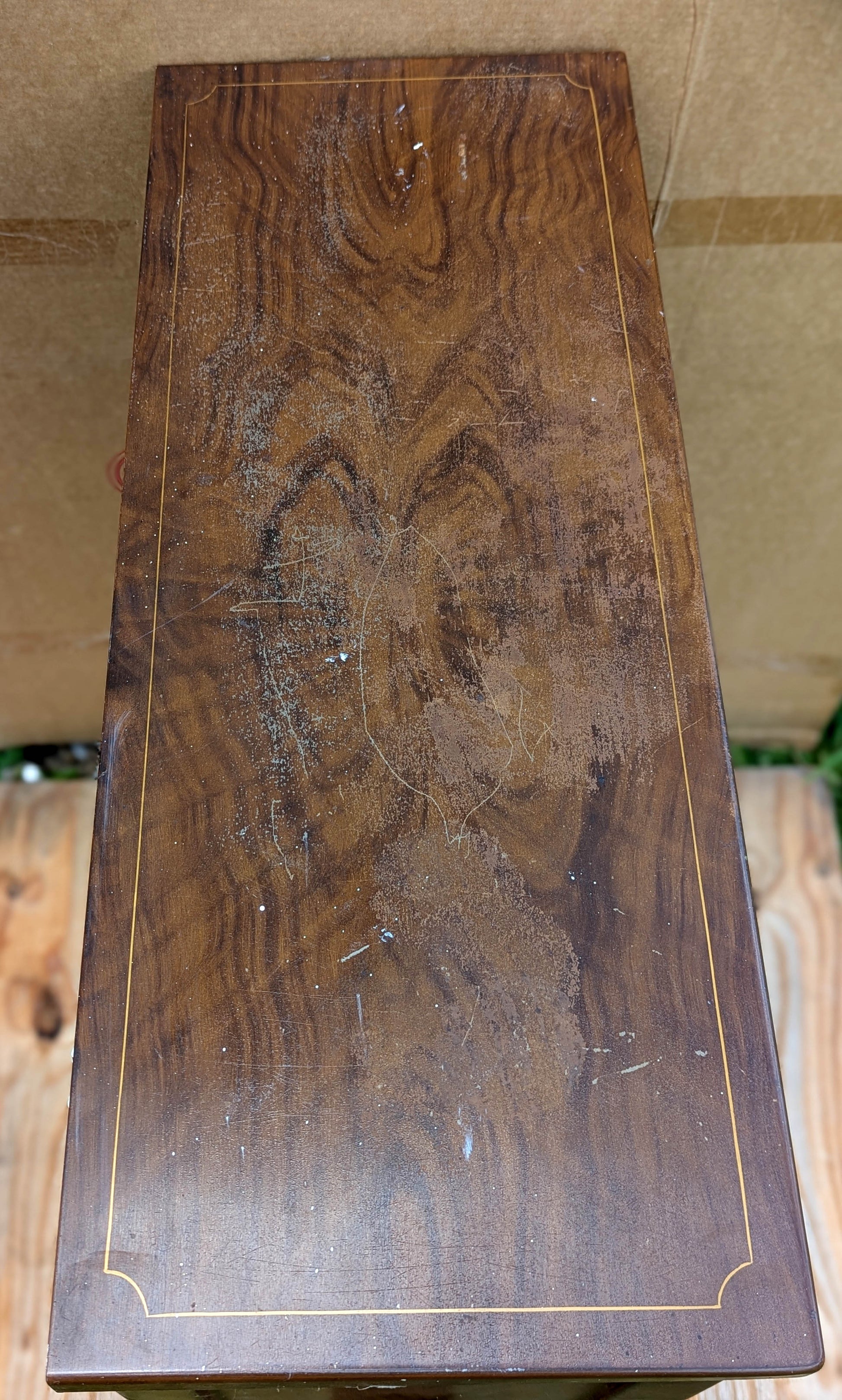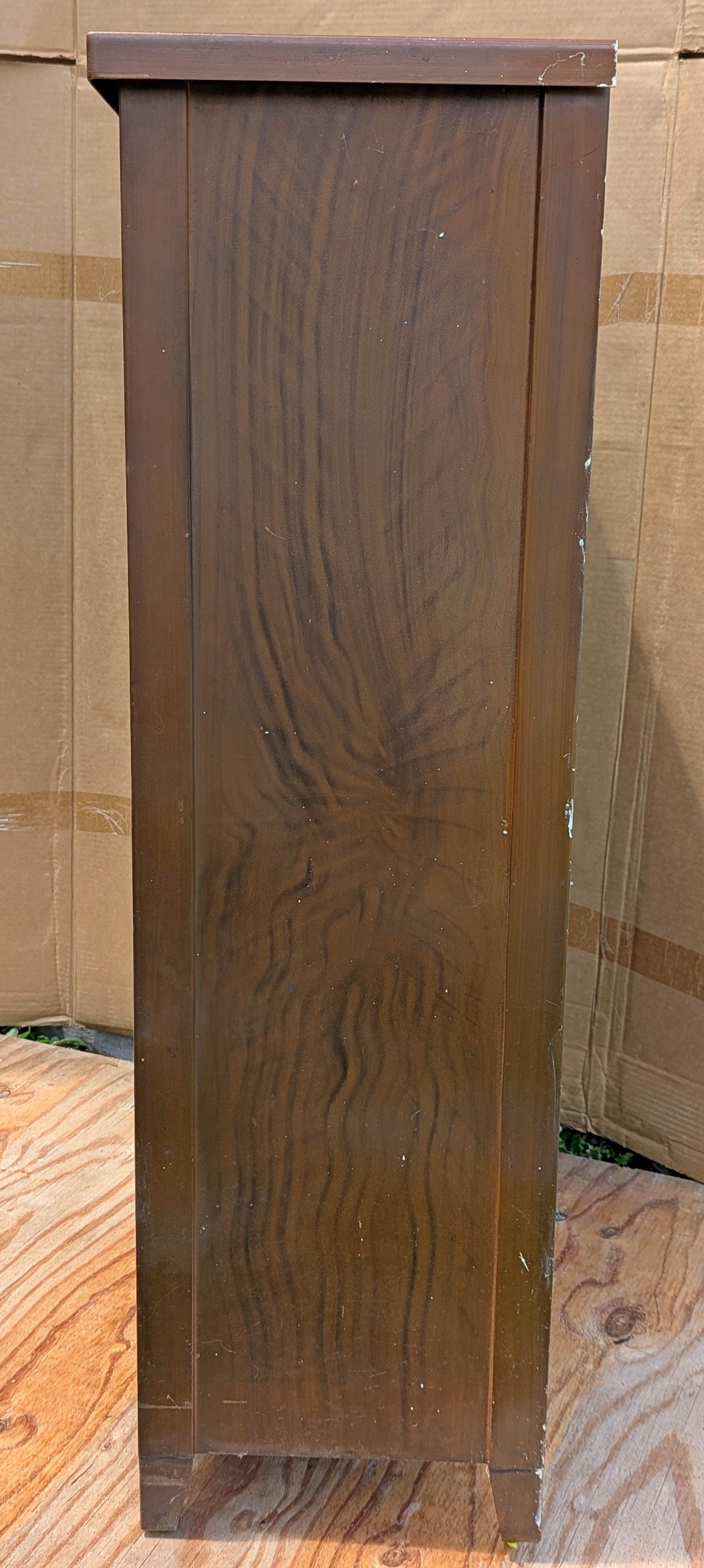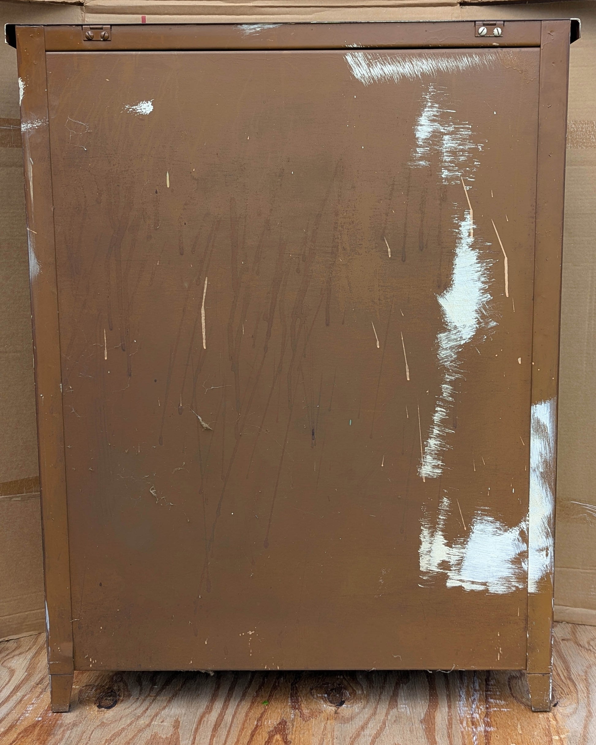 The cabinet is in great condition, with no dents, deep scratches, breaks, cracks, or gouges. Just expect nicks, scratches, and some spots of white paint here and there. The finish and painted design are in also in good shape except on the top where it's pretty worn. The cover is structurally sound and ready for another lifetime of service.