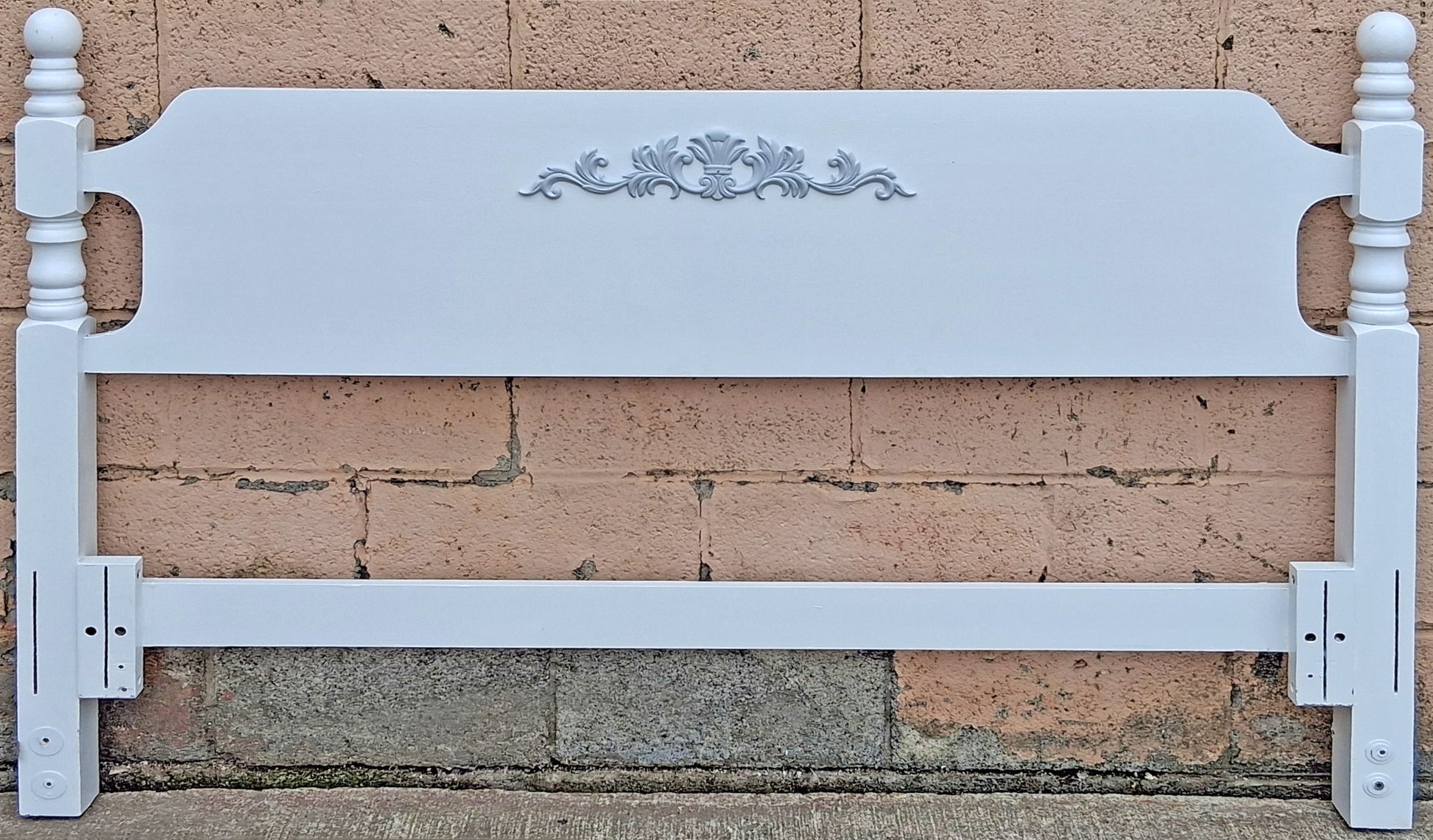 Lovely, vintage, Colonial style headboard salvaged from an old home in Scranton, PA. It's made of solid pine (no veneers), and retains its original white paint.