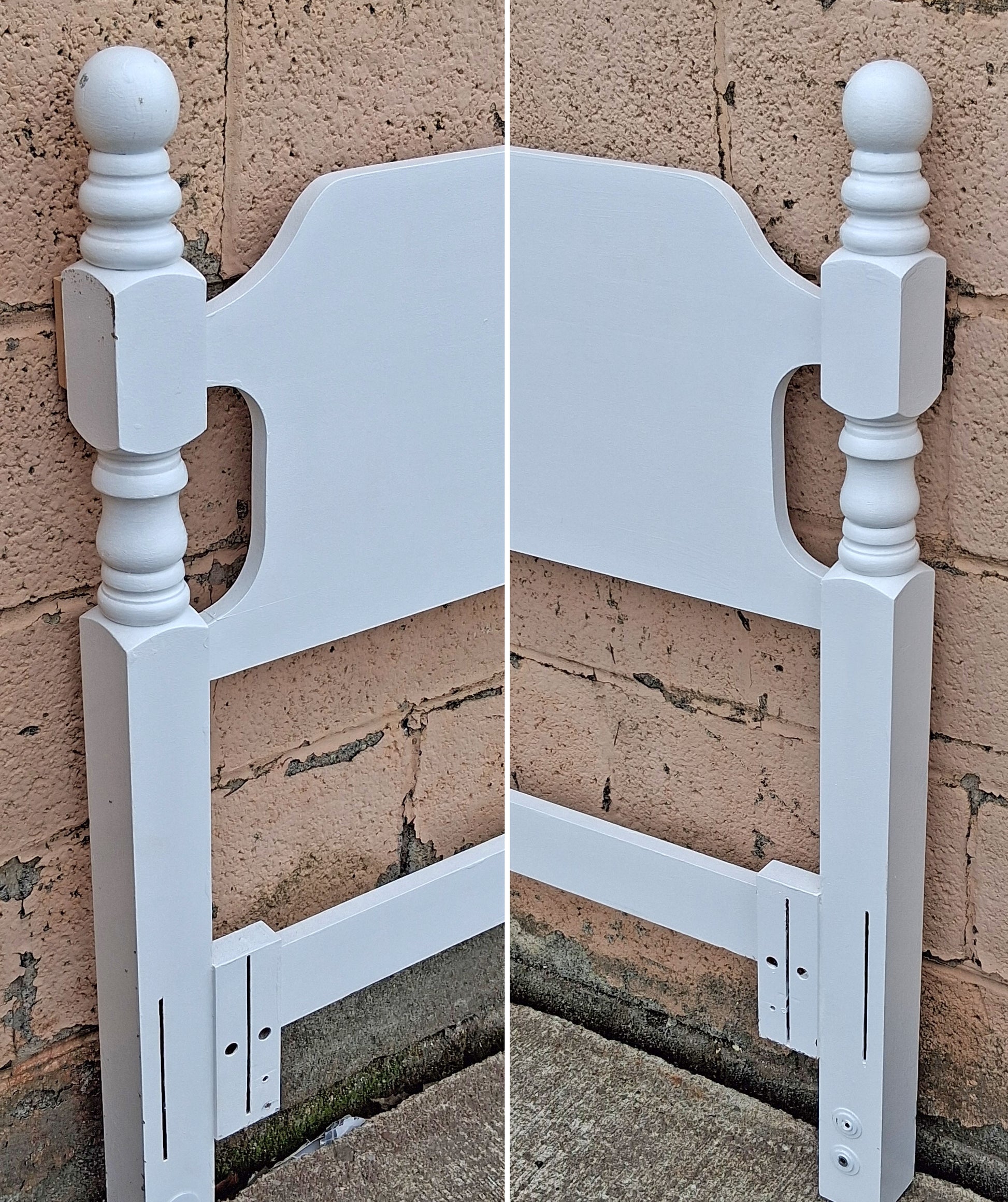 62"x40.5" Vintage Antique Old Reclaimed Salvaged Colonial Traditional Cannonball SOLID Wooden Wood Queen Full Adjustable Size Bed Headboard