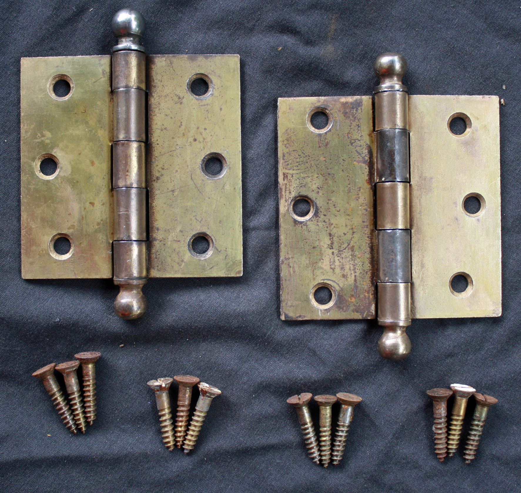 We removed the hinges from various doors that we salvaged from Northeastern PA. At the point of salvage, the hinges were painted, dirty, and  rusty (see last photo). Since then, we removed the paint, and cleaned them to the best of our ability.