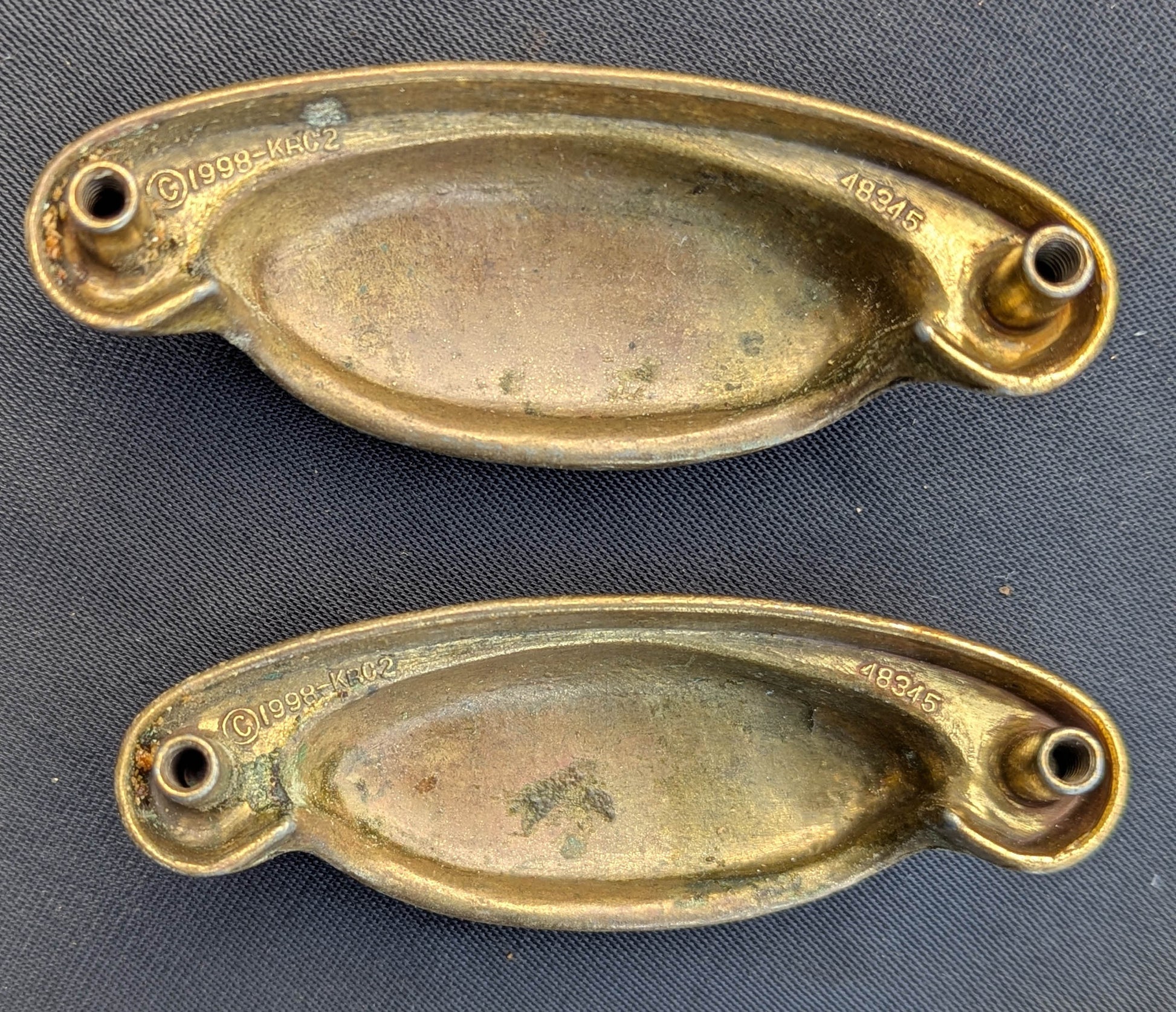 These pulls are in excellent condition with only tiny nicks and light scratches here and there. There are no breaks, cracks, dents, bends, or gouges. They are strong, sturdy, and ready to serve for a another lifetime.