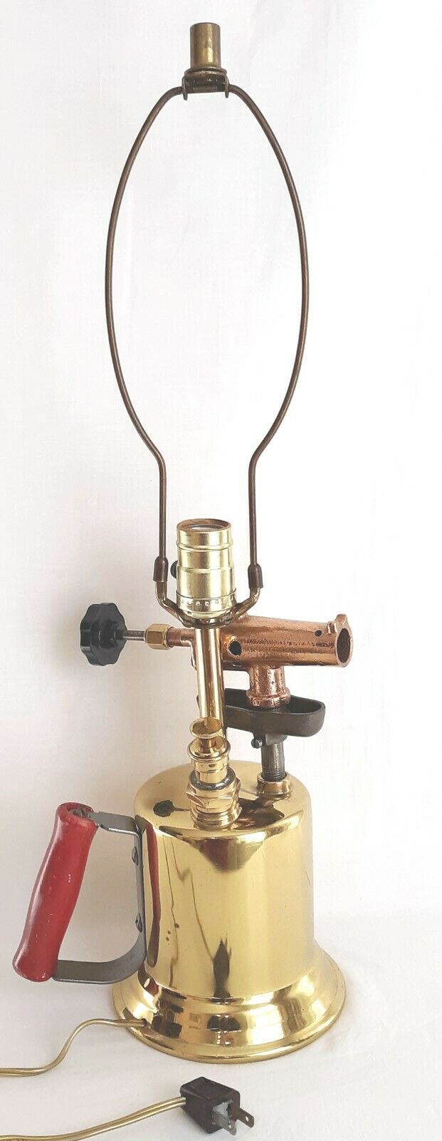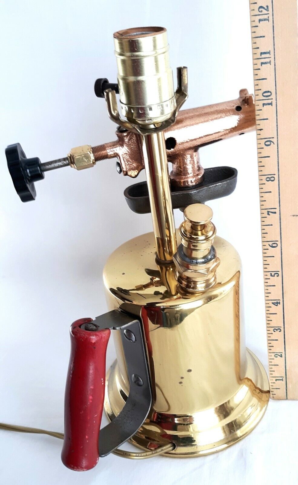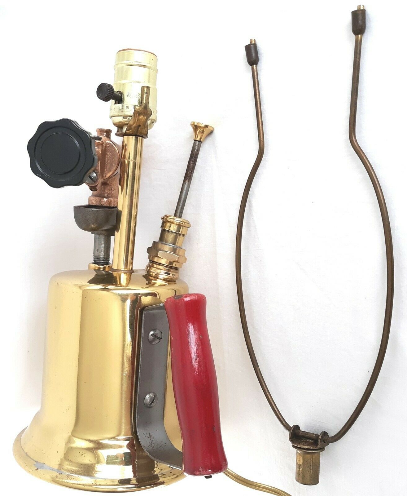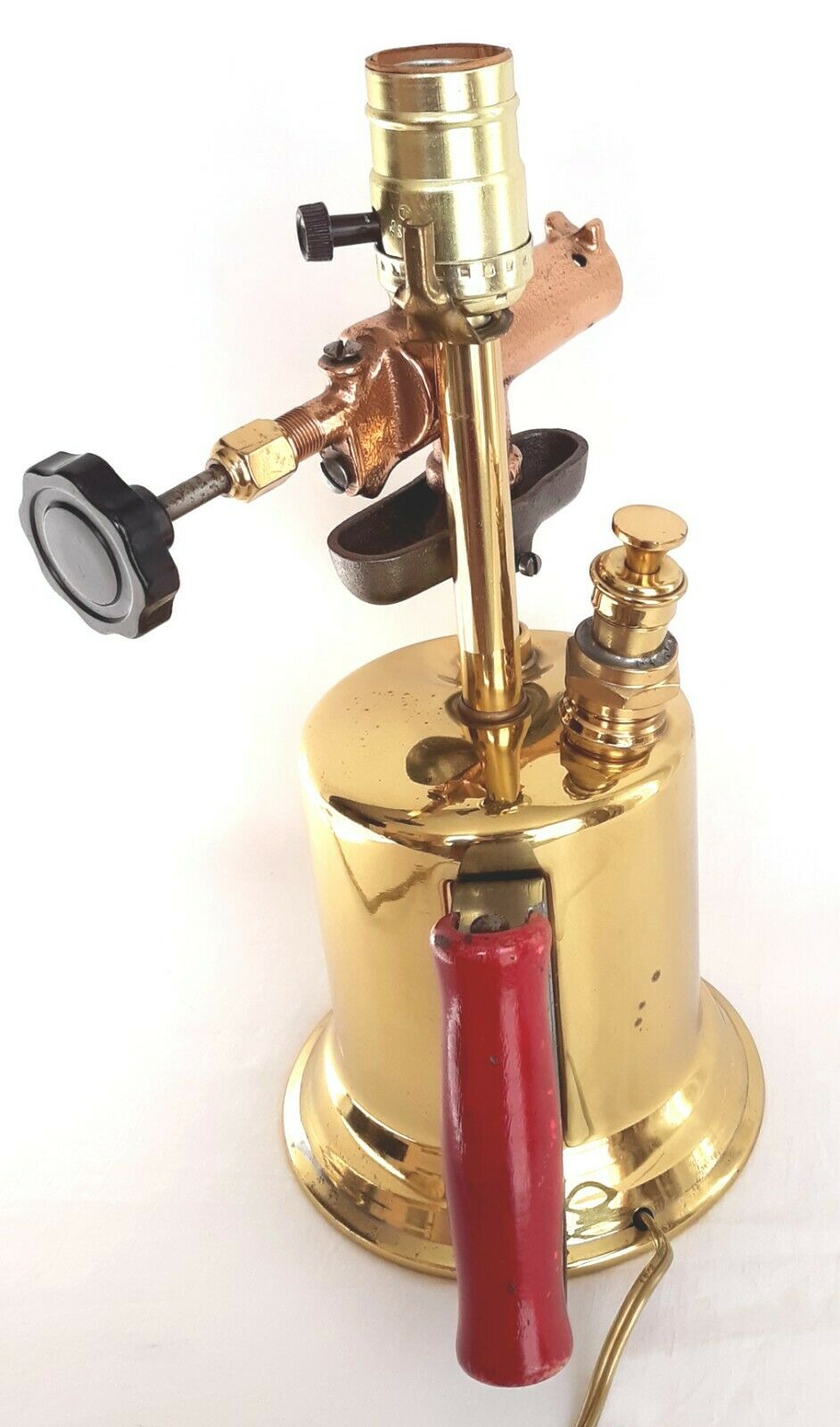 Antique Old Reclaimed Salvaged Decorative Upcycled Welding Blow Torch Electric Lamp Polished Brass