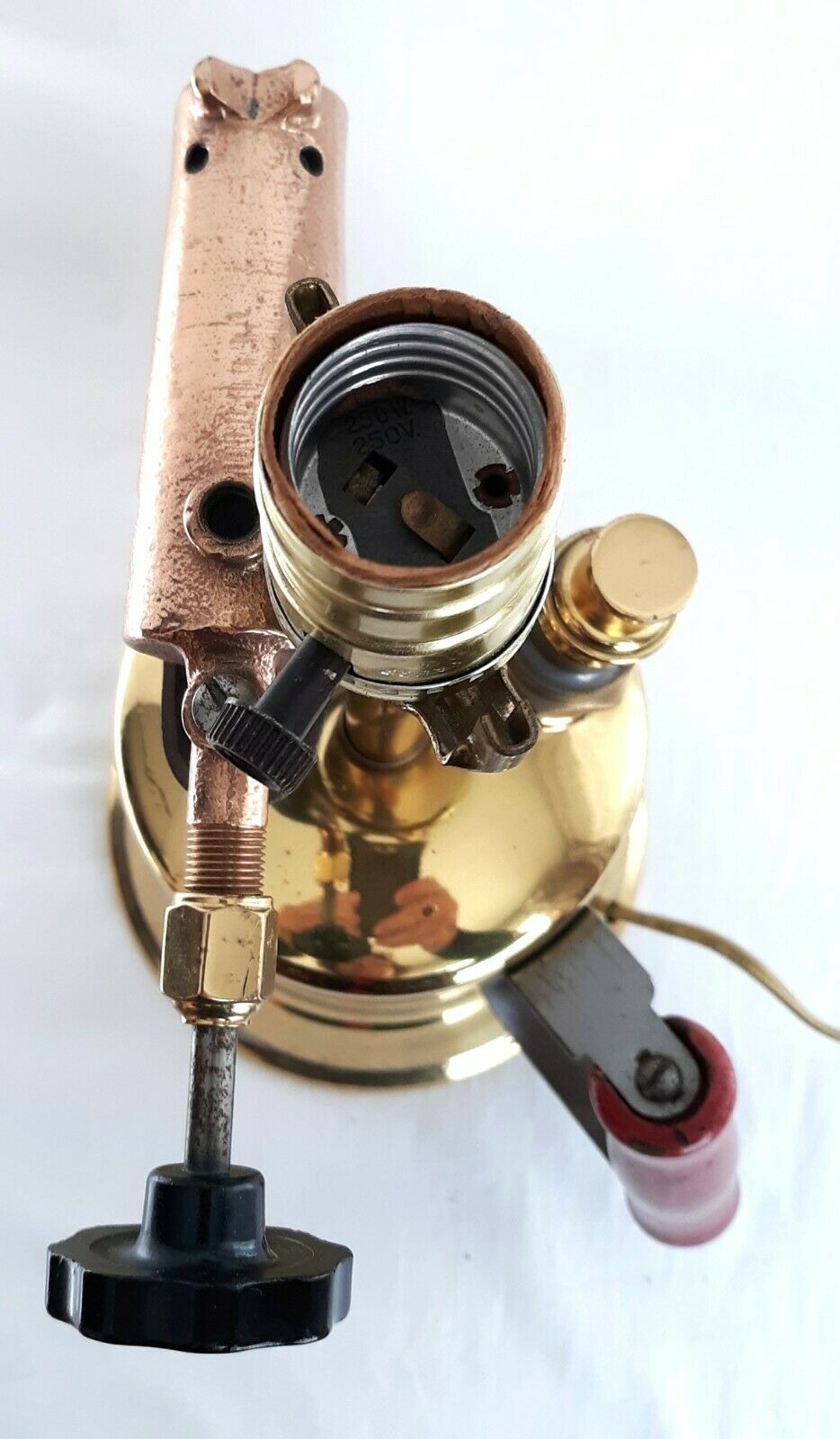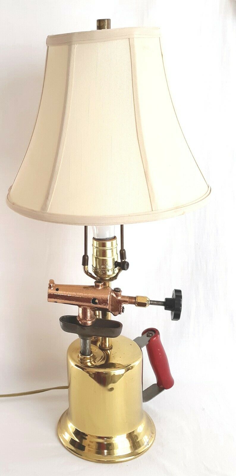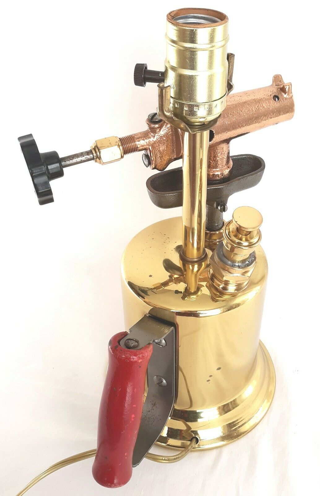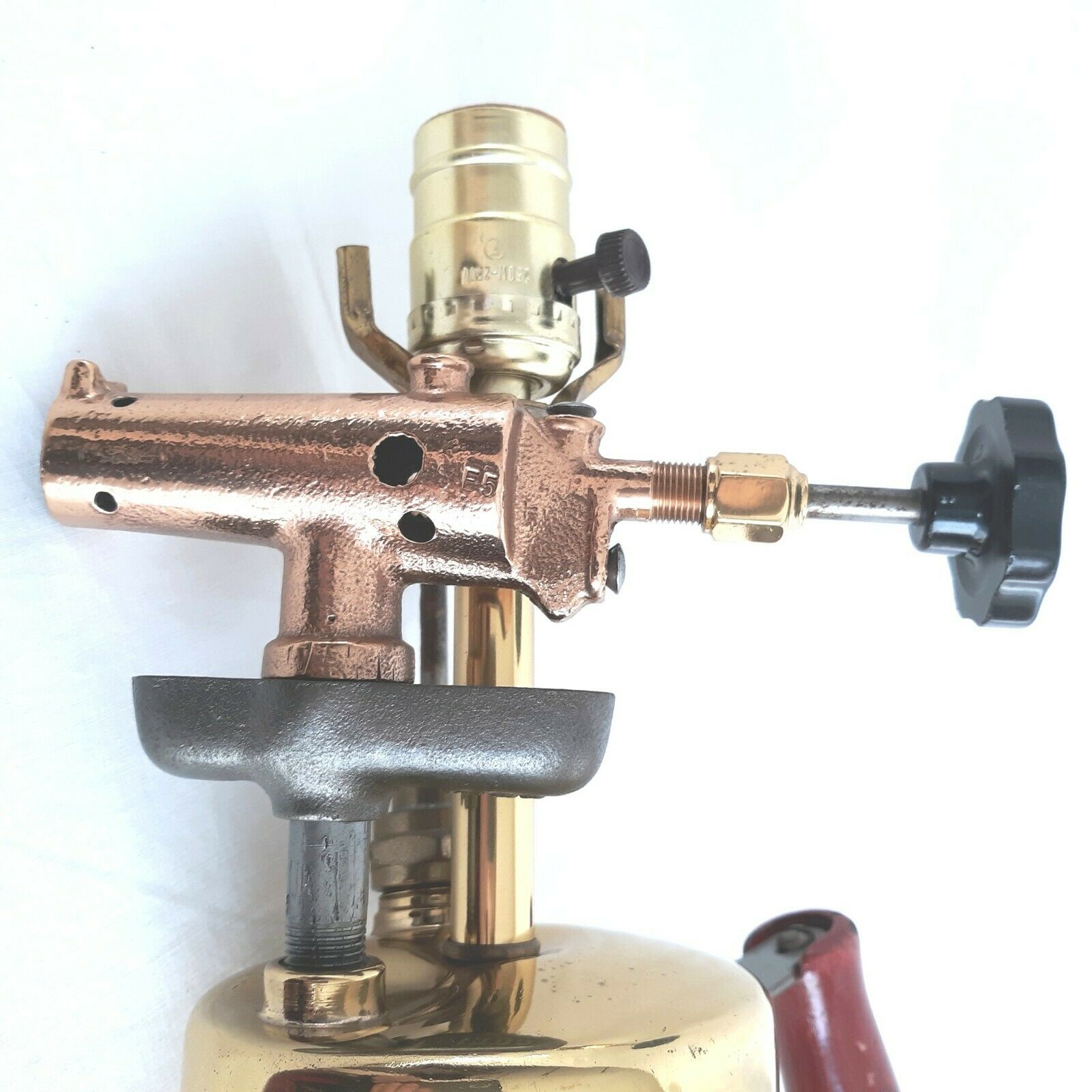 Antique Old Reclaimed Salvaged Decorative Upcycled Welding Blow Torch Electric Lamp Polished Brass