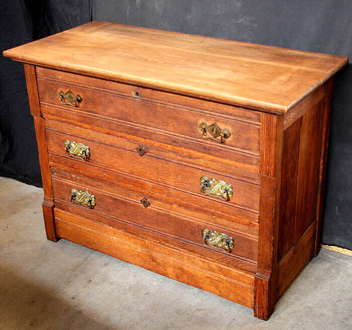 Antique Vintage Old Reclaimed Salvaged Victorian Eastlake Oak Wood Wooden Dresser Chest Vanity Beveled Mirror Key