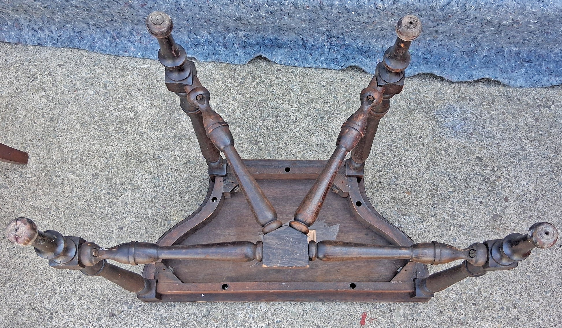 Our carpenter inspected the piece from top to bottom and said that all of the joints are tight, and there are no weak spots what-so-ever. Except for the small separation at the back, the piece is in near-excellent structural condition with minimal nicks and scratches. There are no breaks, cracks, gouges, or any serious flaws. This table is strong, sturdy, and ready for another lifetime of service!