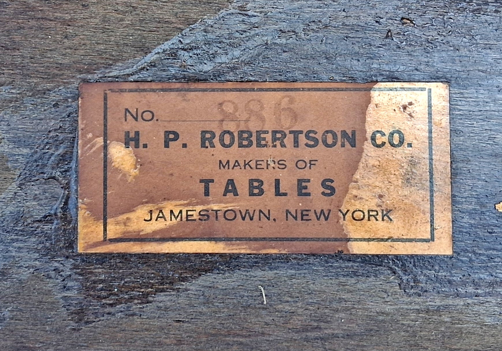 Exquisite, antique console table salvaged from an old home in Northeastern PA. The piece was made anywhere from 1906-16 by the H.P. Robertson Company out of Jamestown, NY. It's made of solid wood and has its original stain and finish.