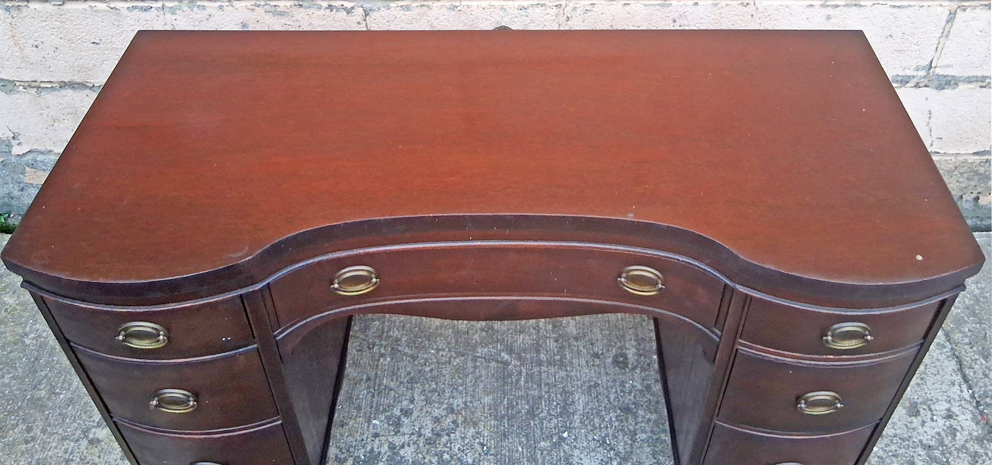 Antique Vintage Old Reclaimed Salvaged Colonial Chippendale Solid Wood Wooden Kidney Writing Office Studio Bureau Desk Work Table Vanity