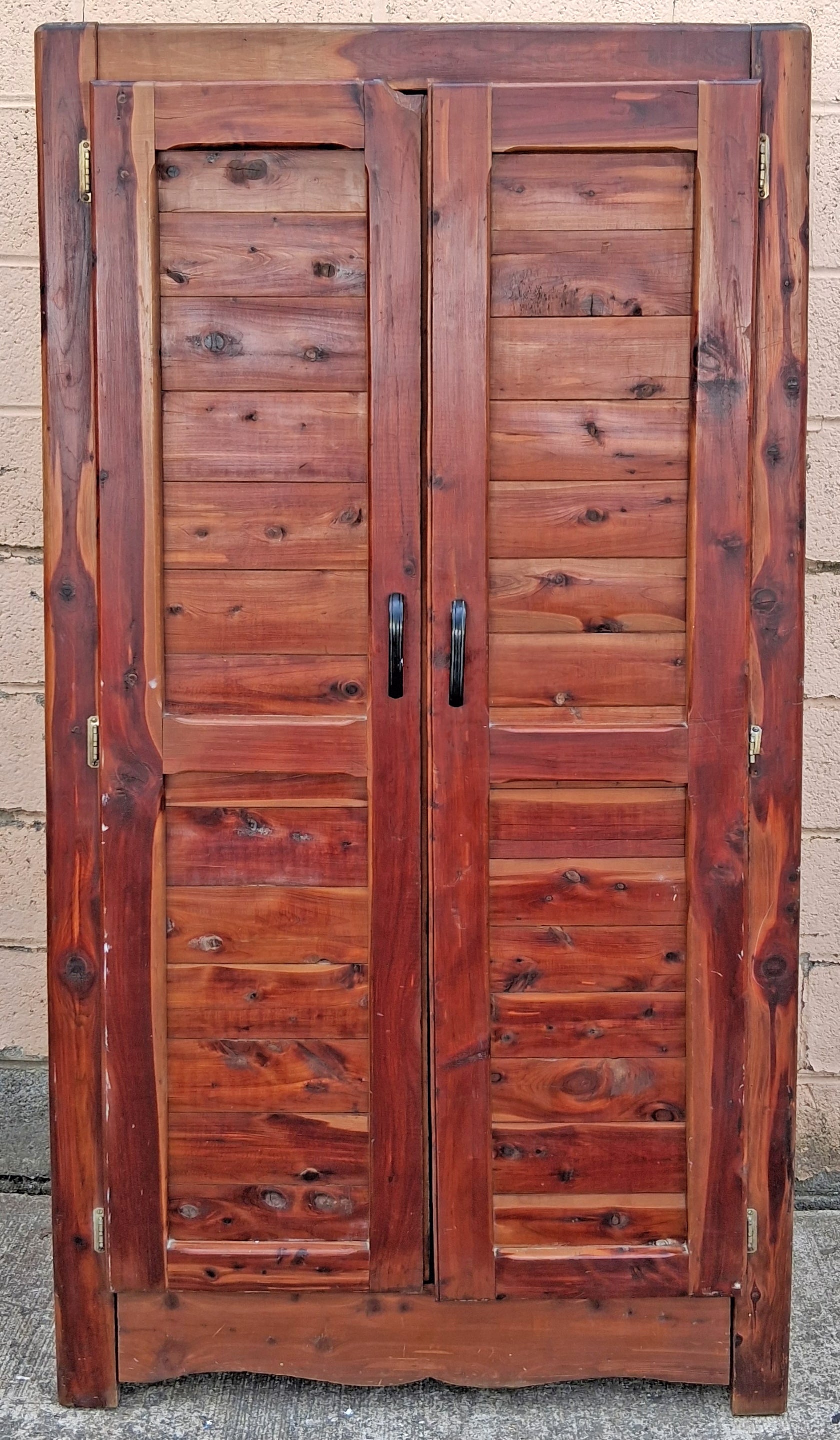 Antique Vintage Old Reclaimed Salvaged Country Farmhouse Rustic Primitive Solid Cedar Wood Wooden Armoire Wardrobe Cabinet Closet Clothes