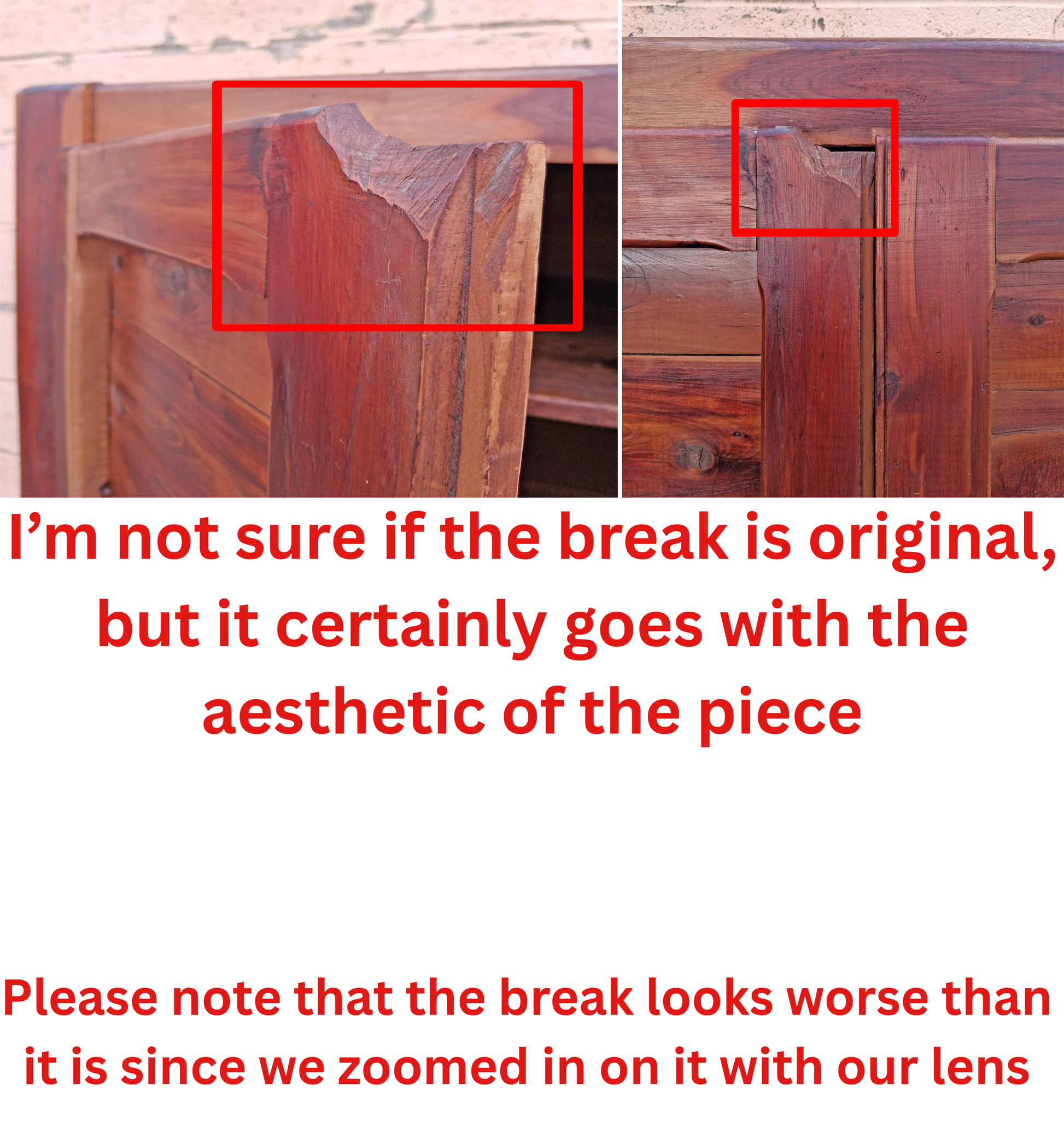 Considering that the piece is well over 100 years, it is in great condition. Besides a small break on one of the doors (see last photo). the wardrobe has the typical nicks, scrapes, scratches, and spots of worn finish here and there that you would expect to find on a piece this old. However, there are no breaks, rot, warp, or any other serious flaws. All the drawers slide in and out with ease!