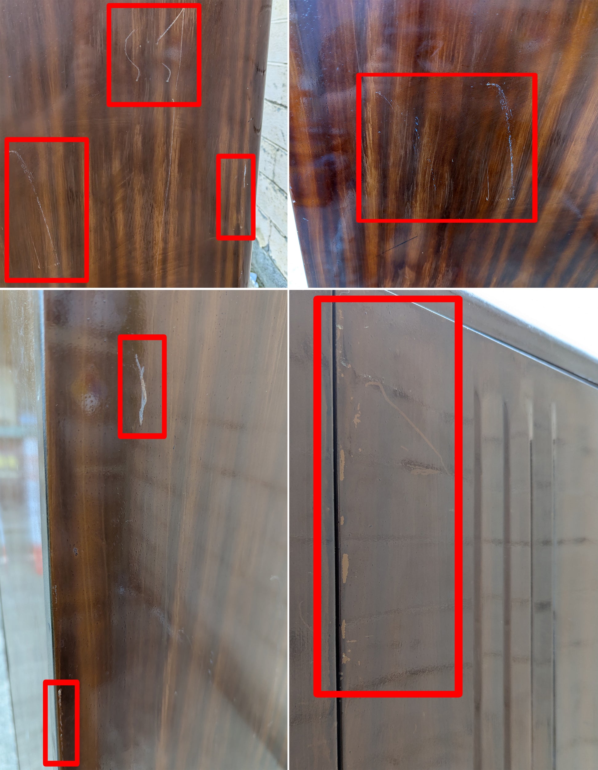 Besides the lock quirk, the only "damage" on the cabinet are small scratches in the paint (see 2nd to last photo). However, most of them are on the back and sides, and the ones on the front are hardly notice-able.