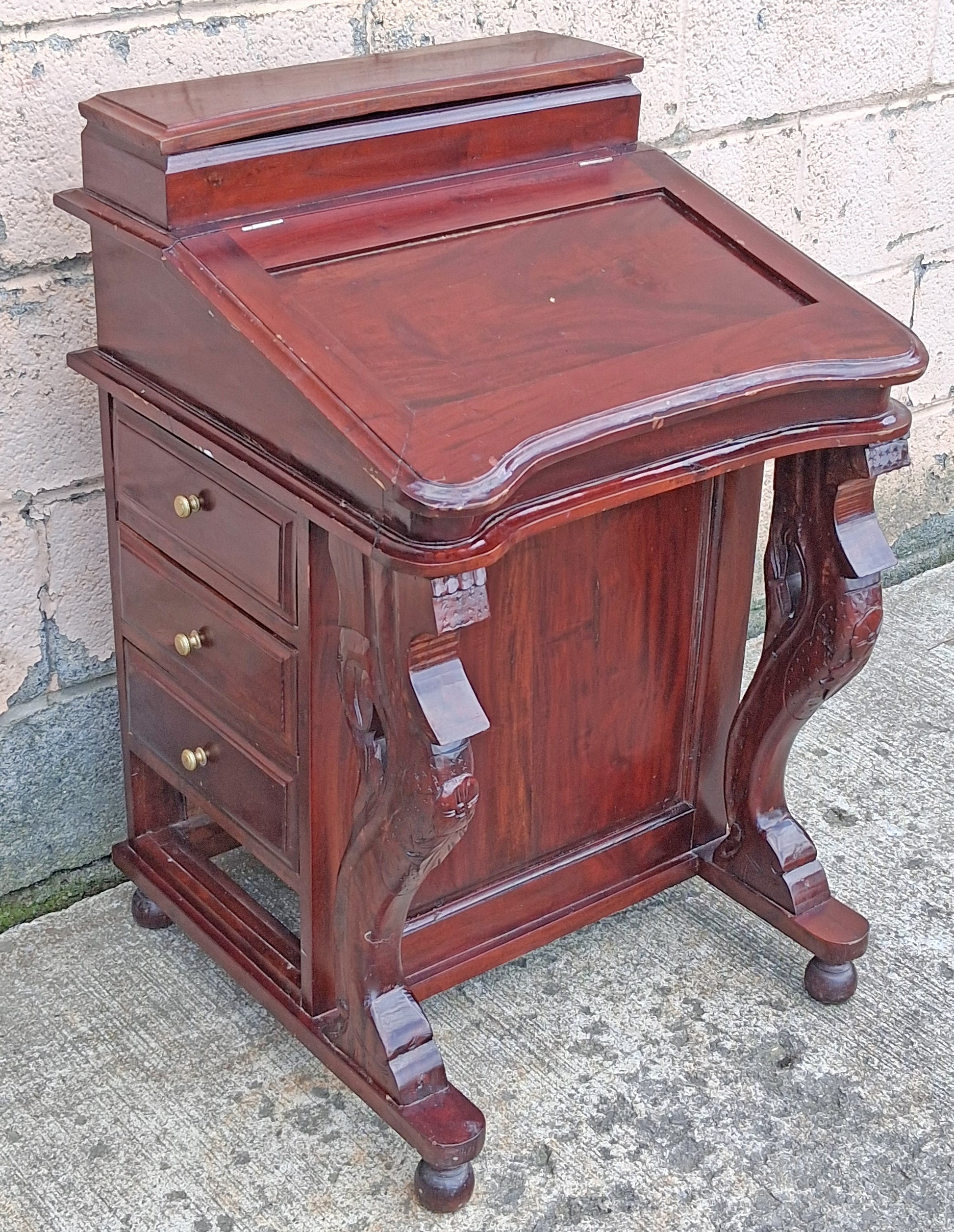 Antique Vintage Old Reclaimed Salvaged Solid Mahogany Wood Wooden Slant Front Secretary Davenport Desk Writing Table Drawers
