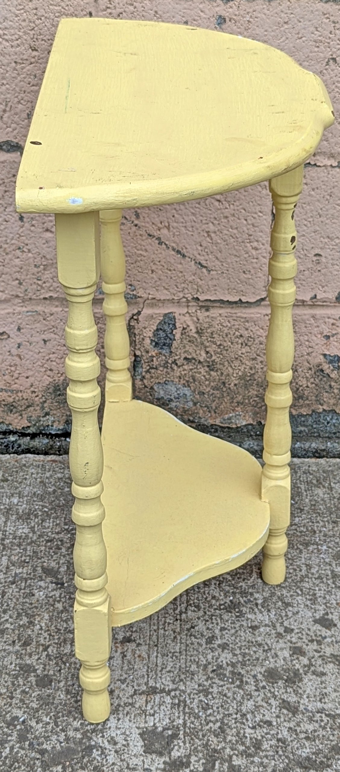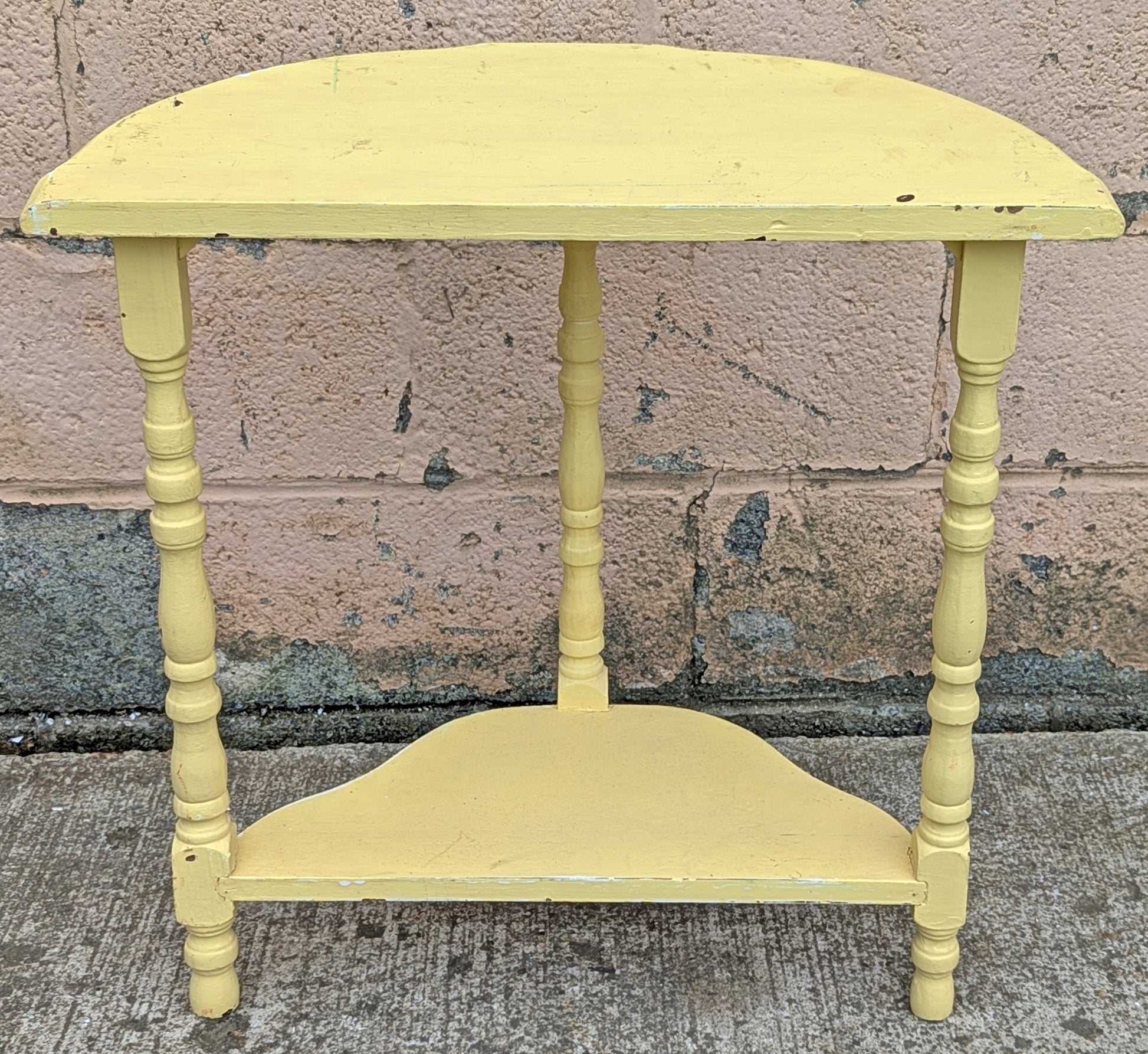 Antique Vintage Old Reclaimed Salvaged Victorian Solid Wood Wooden Console Half Round Semi Circle Lamp End Side Pedestal Table Plant Stand