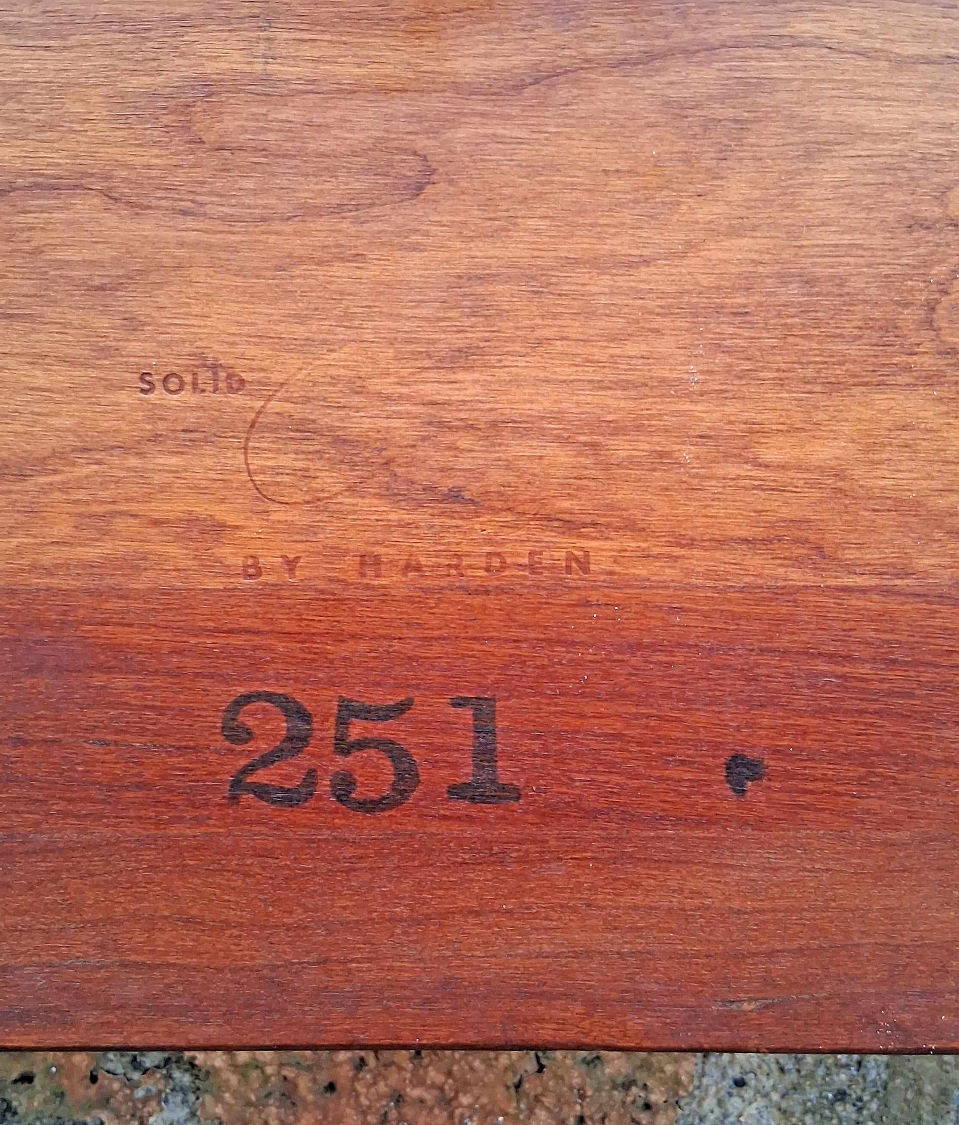 Lovely, colonial, full-sized bed set salvaged from an old home in Scranton, PA. Made by "Harden" which was known for high-end, solid wood furniture, the company was recognized for its craftsmanship and sustainable forestry practices. Except the slats, the whole bed frame is made of solid Cherry wood.