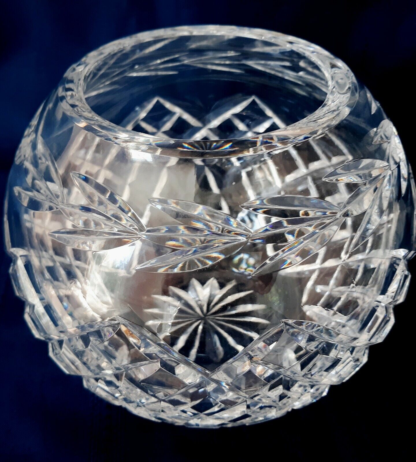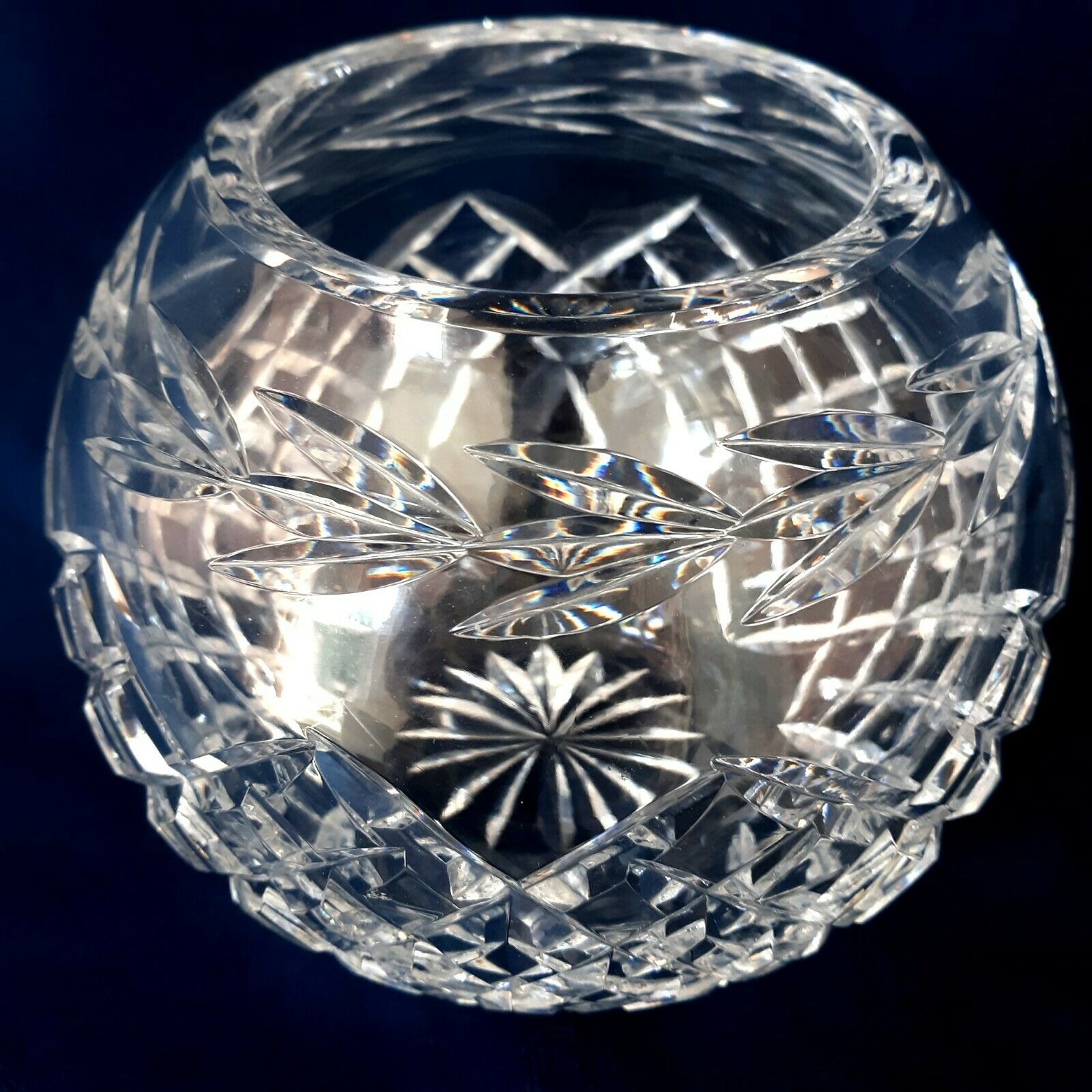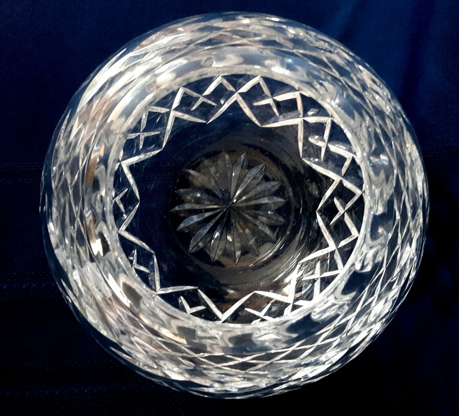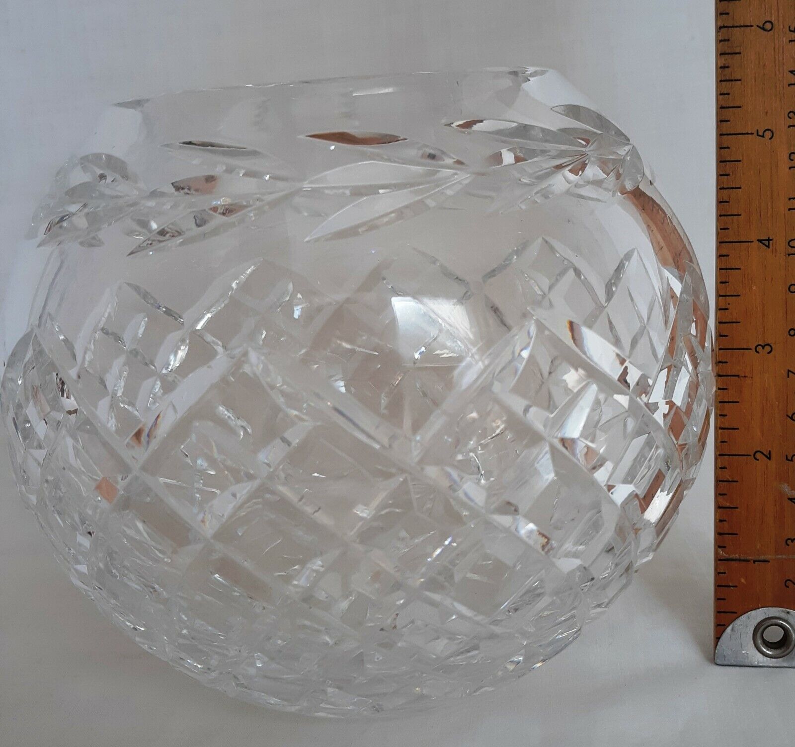 This listing is for a vintage Kosta Boda lead crystal glass heavy table vase. Contemporary art glass vase features a sphere shape with deep cut diamond panels that enhance the play of light across the clear crystal. Panels are faceted to perfection. Starburst design on bottom. Top displays a laurel wreath band panel (7/8 inch wide). It was purchased in Sweden, late 80’s. Never been used and kept it just for display.