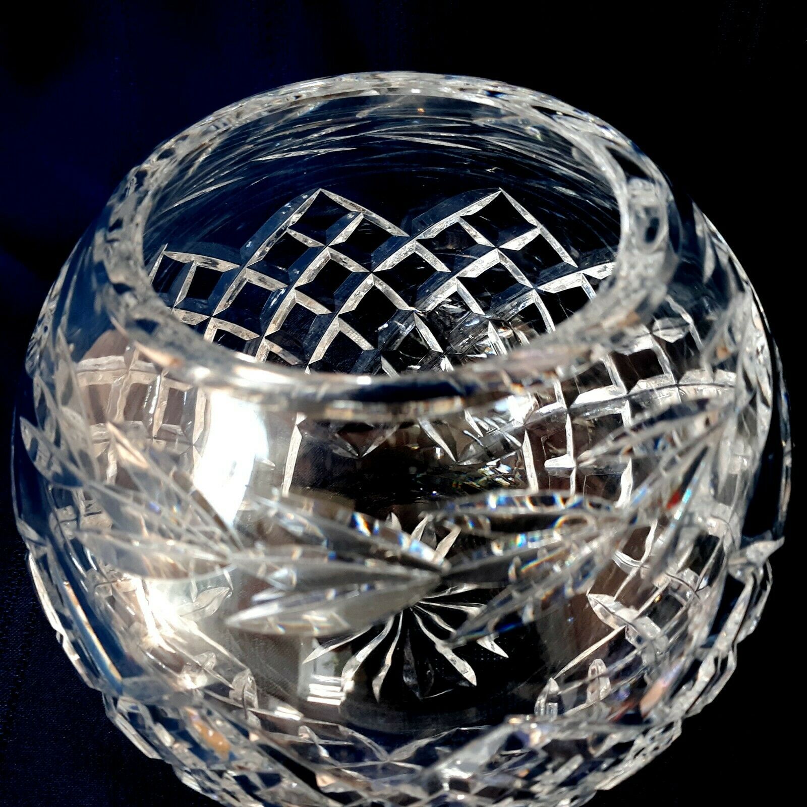 Kosta Boda Art Deco Lead Crystal Heavy Vase Contemporary Art Glass Globe Faceted Panels Cut Crystal Sphere Shape Elegant Glassware