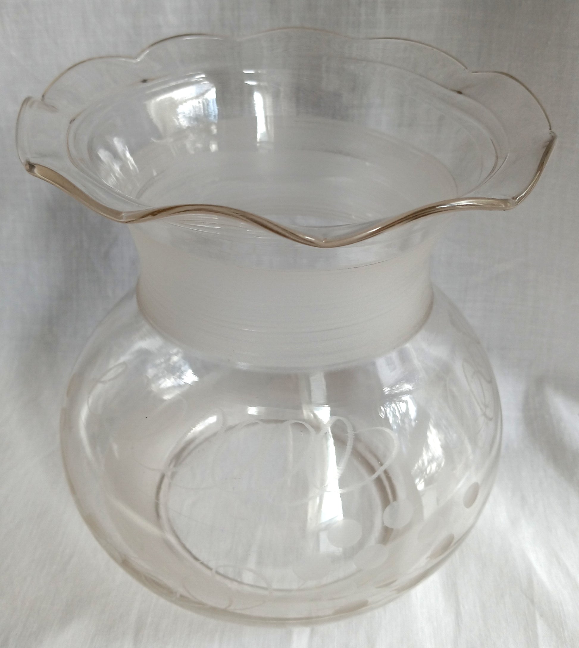 Old Fashioned Clear Frosted Glass Etched Grape Design Vintage Hurricane Chimney Bulge Shape Shade Kerosene Oil Lamp Cover 3.5 Inches Bottom