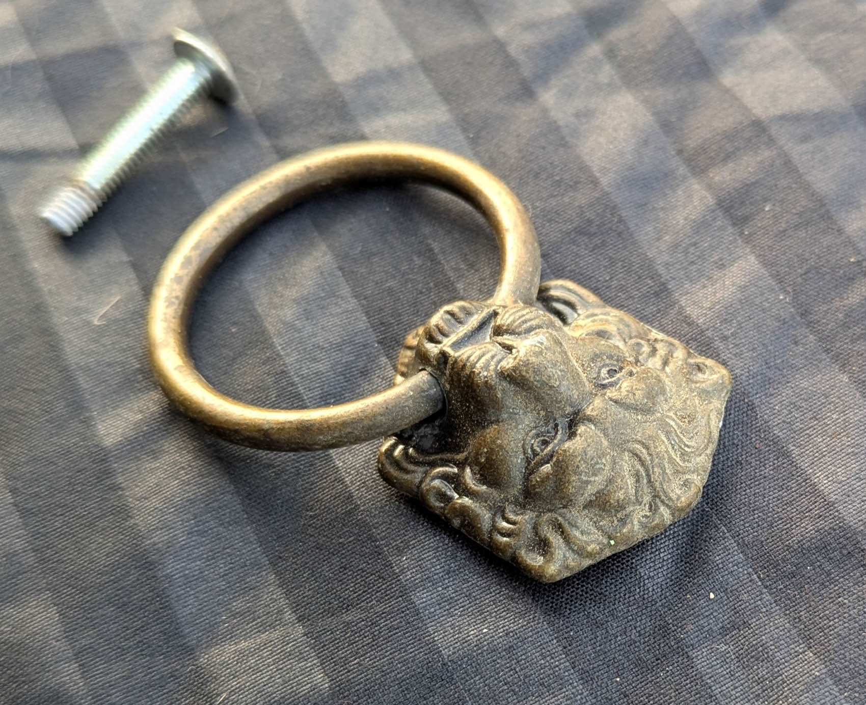 Vintage Old "Allison" Lion Head Brass Drawer Cabinet Furniture Drop Ring Pull Handle Amerock