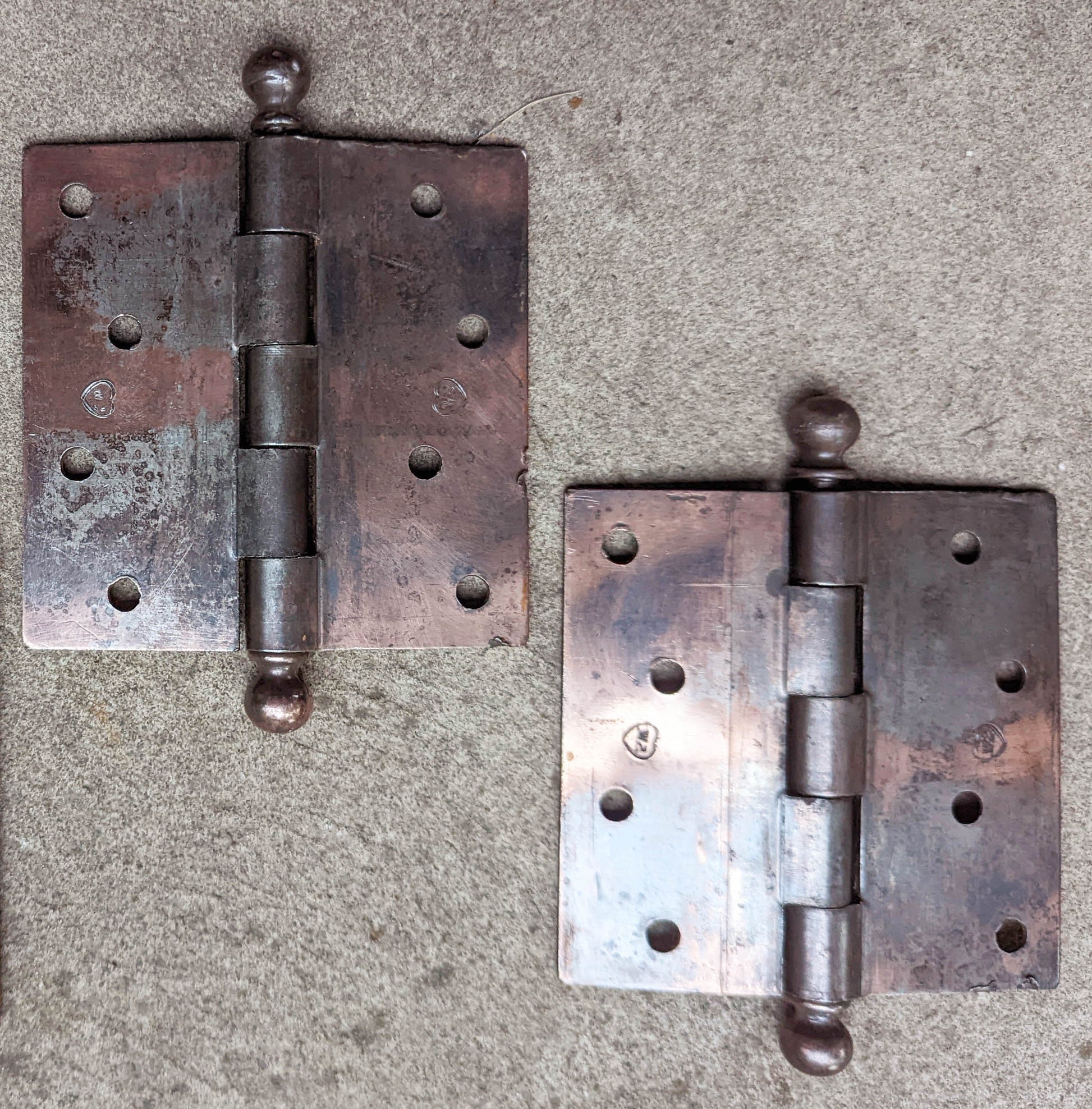 Pair 4.5"x5.5" Antique Vintage Old Reclaimed Salvaged "Stanley" Steel Copper Steel Ball Tip Finial Exterior Entry Door Hinges Screws