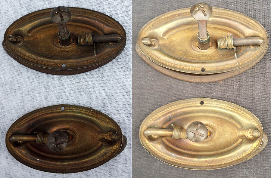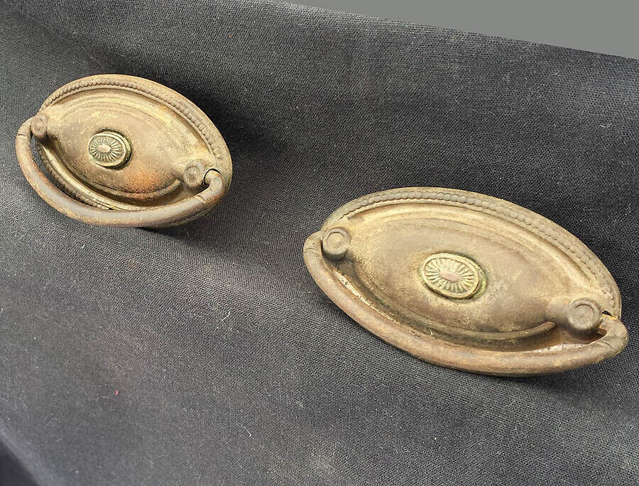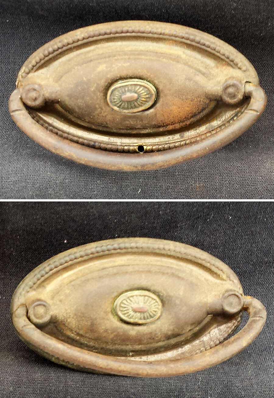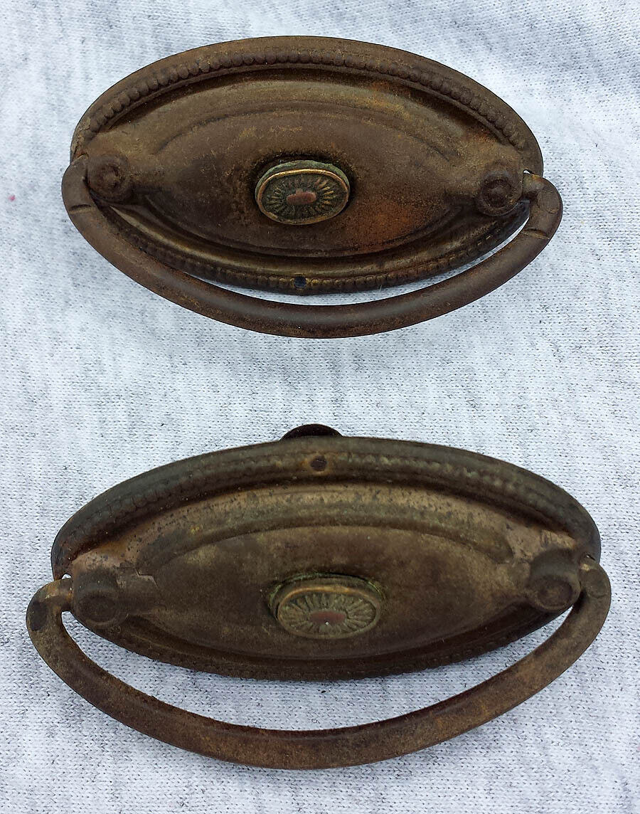 Pair Antique Vintage Old Reclaimed Salvaged Metal Drawer Cabinet Furniture Door Drop Pull Handle Plate