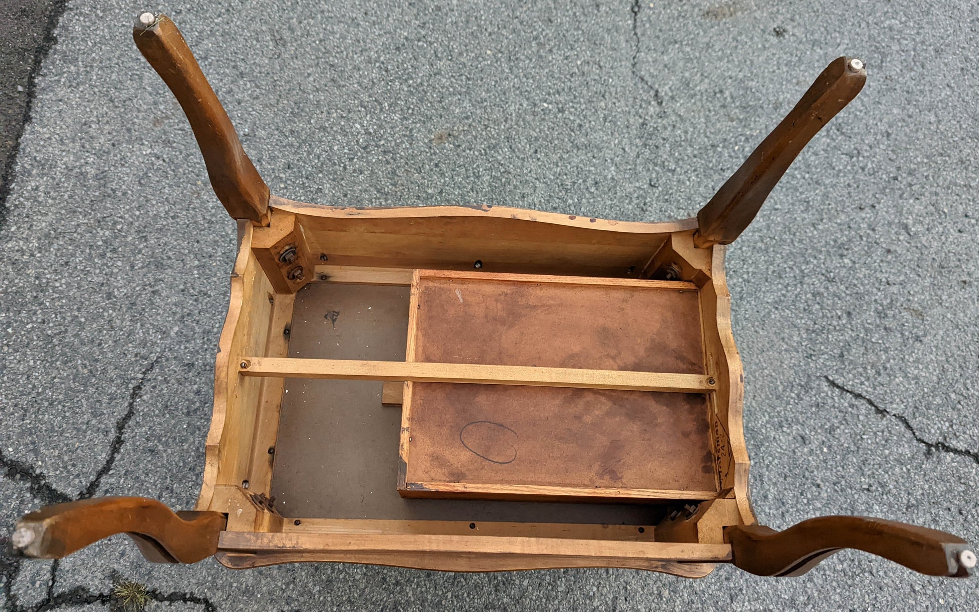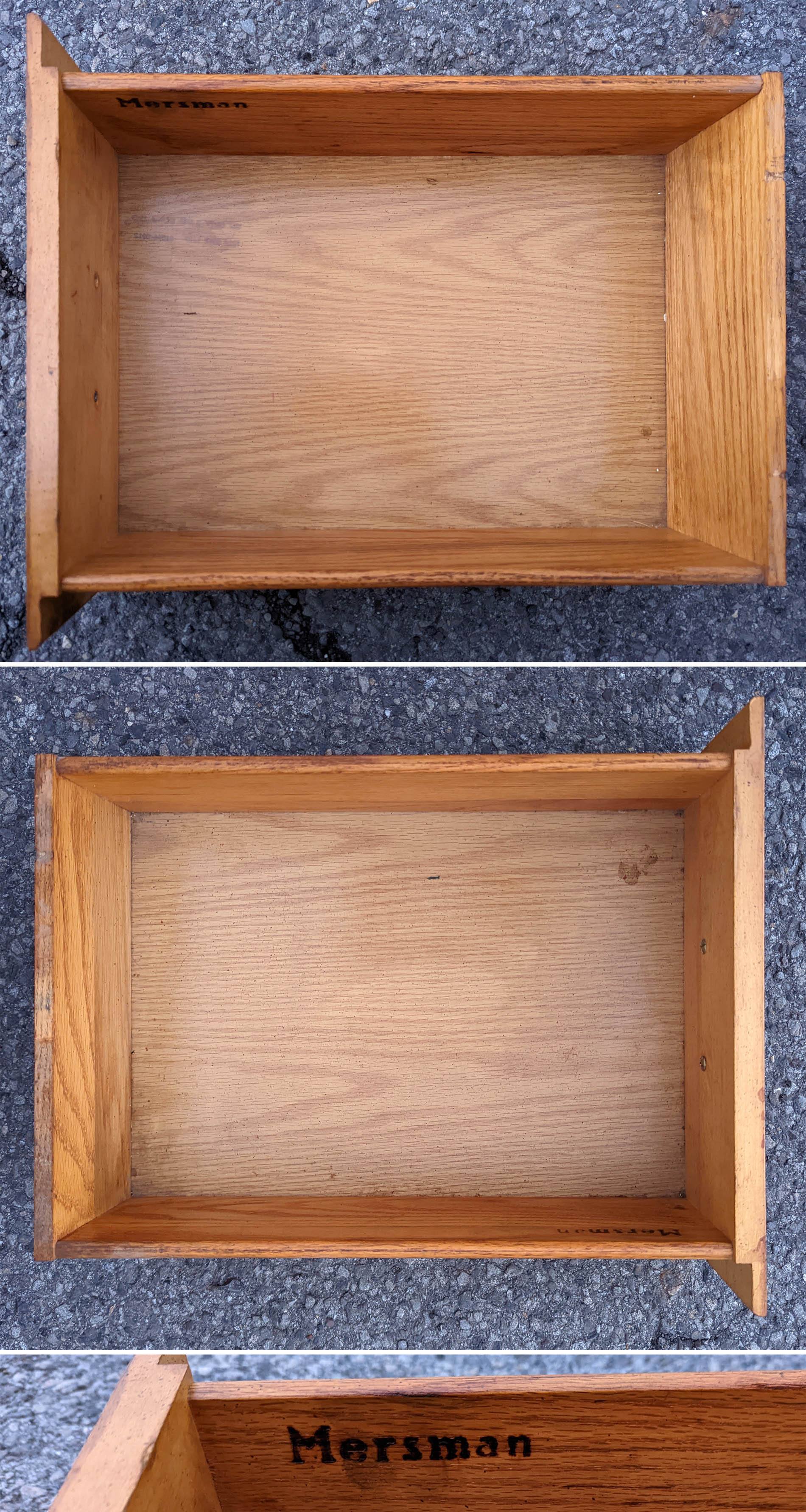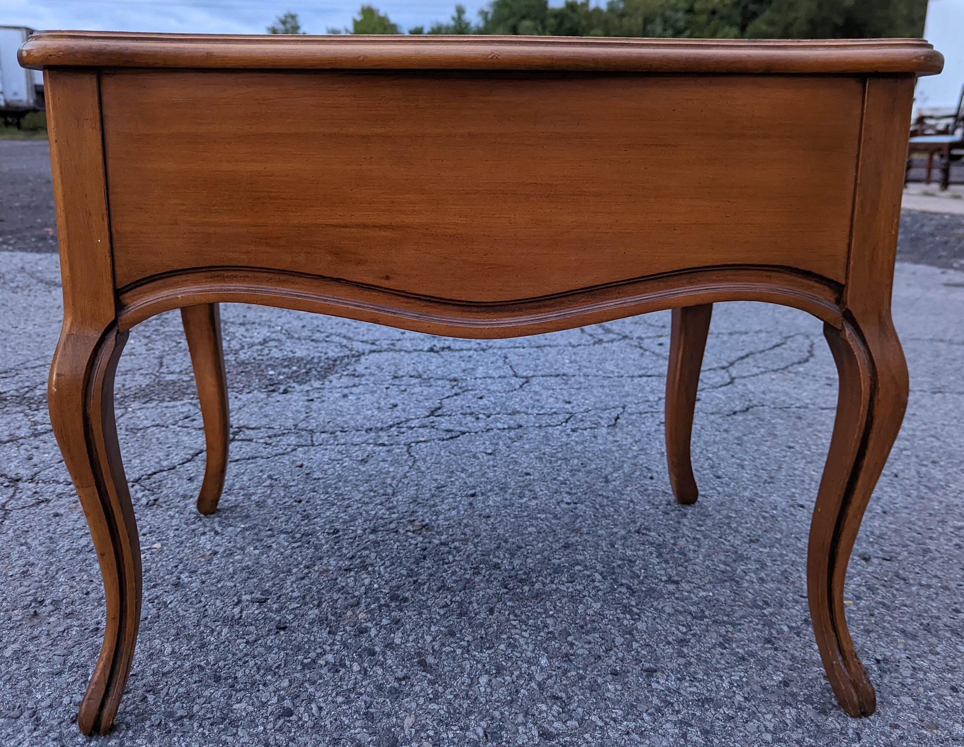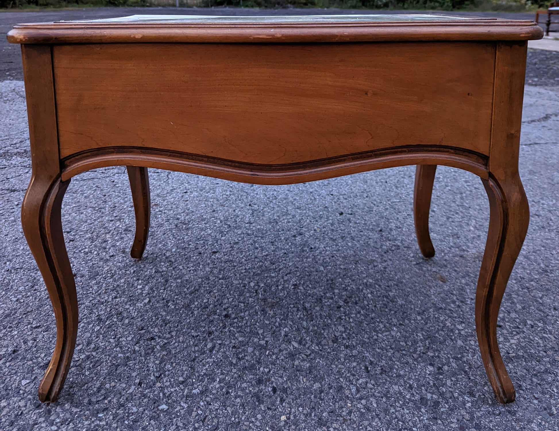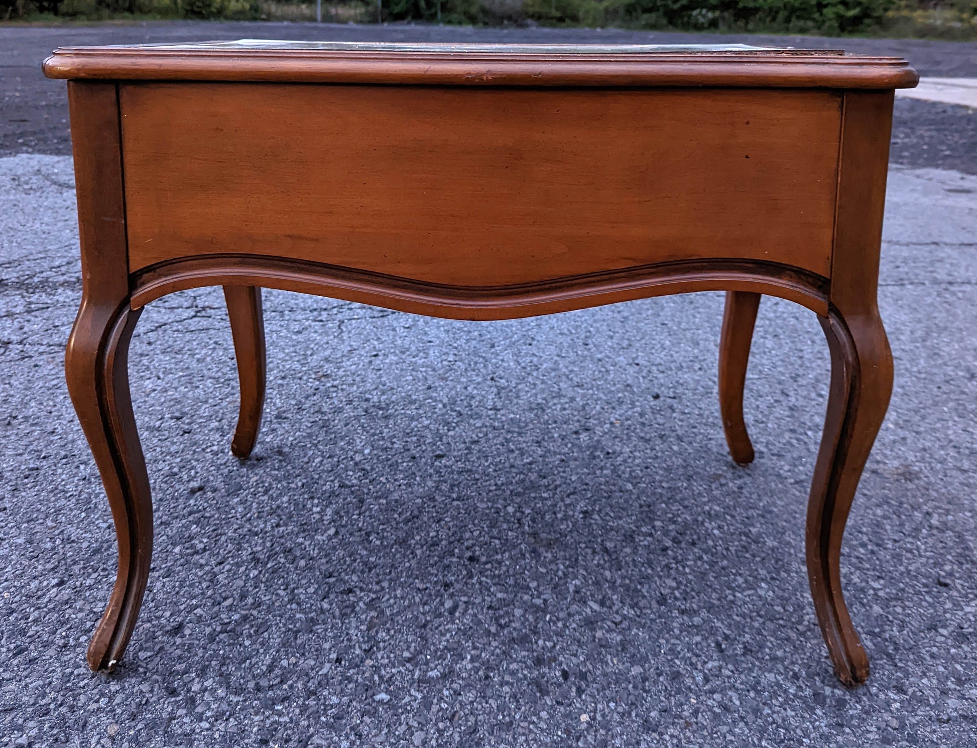 Vintage, French style, end tables or nightstands salvaged from Northeastern Pennsylvania. They were made by, "Mersman," of Celina, OH and are made of solid maple (no particle board or MDF). The rectangular center panels on top are Formica veneer. They have a marble-grain design.