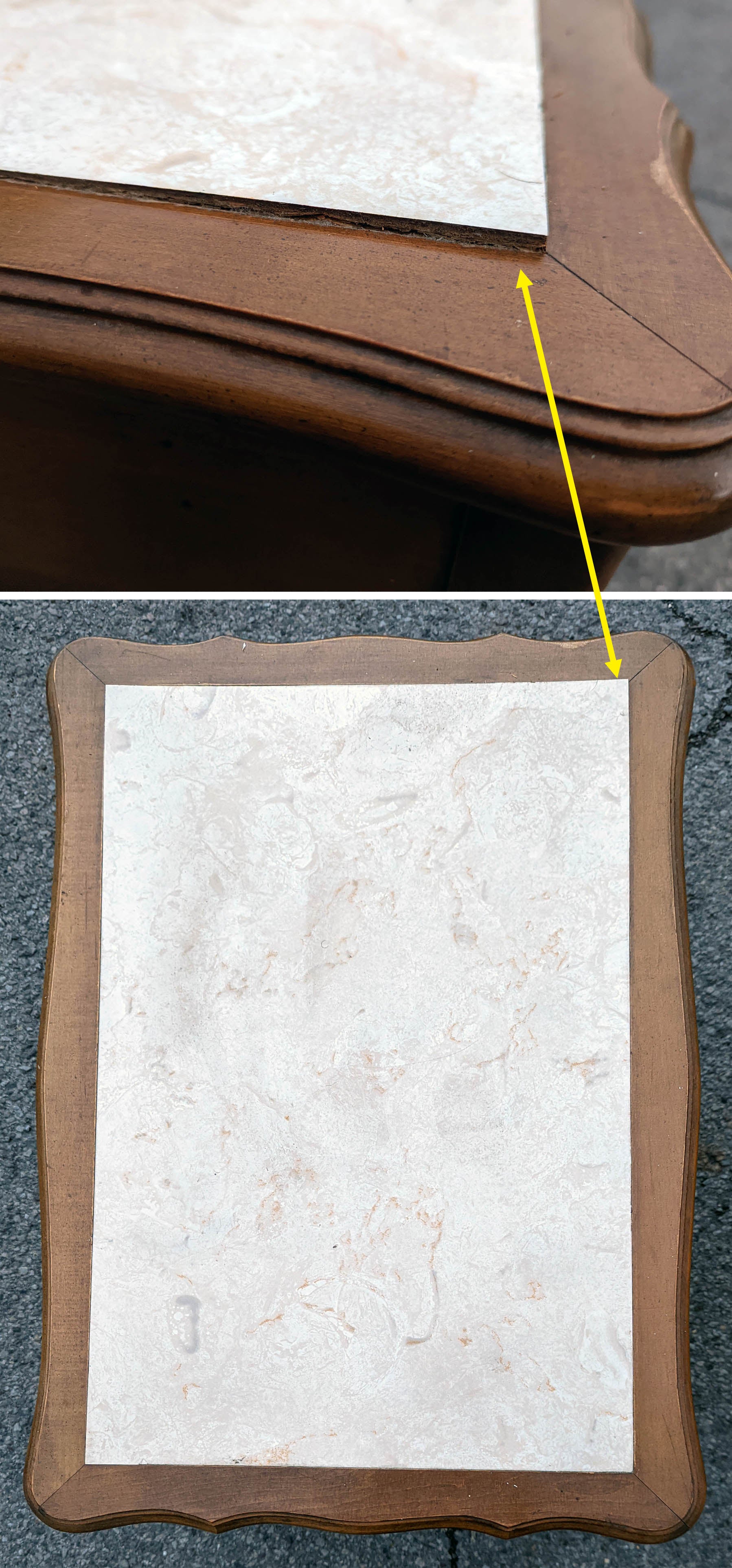 Cosmetically, they have the typical nicks, scratches, and spots of worn finish here and there that you would expect to find on a pieces this old. There is also a corner on one of the center panels that is raised (see close-up photo). However, there are no breaks, rot, warp, or any other serious flaws. The Formica is also very clean considering it's age; no deep scratches, stains, or marks. The tables a are strong, sturdy, and are ready for another lifetime of service!