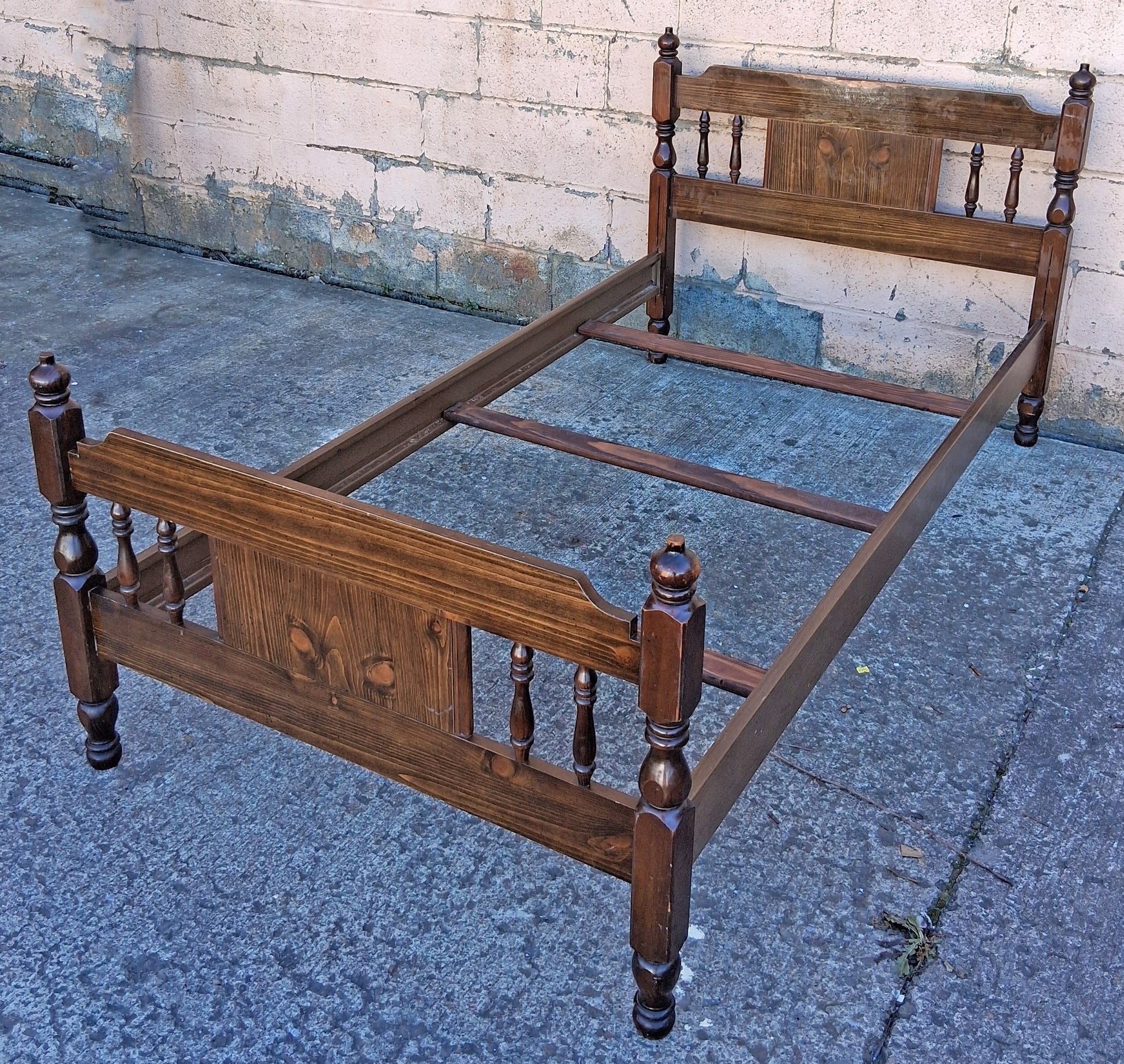 Vintage Antique Old Reclaimed Salvaged Colonial Traditional Style Wood Wooden Twin Size Bed Frame Head Foot Board Set