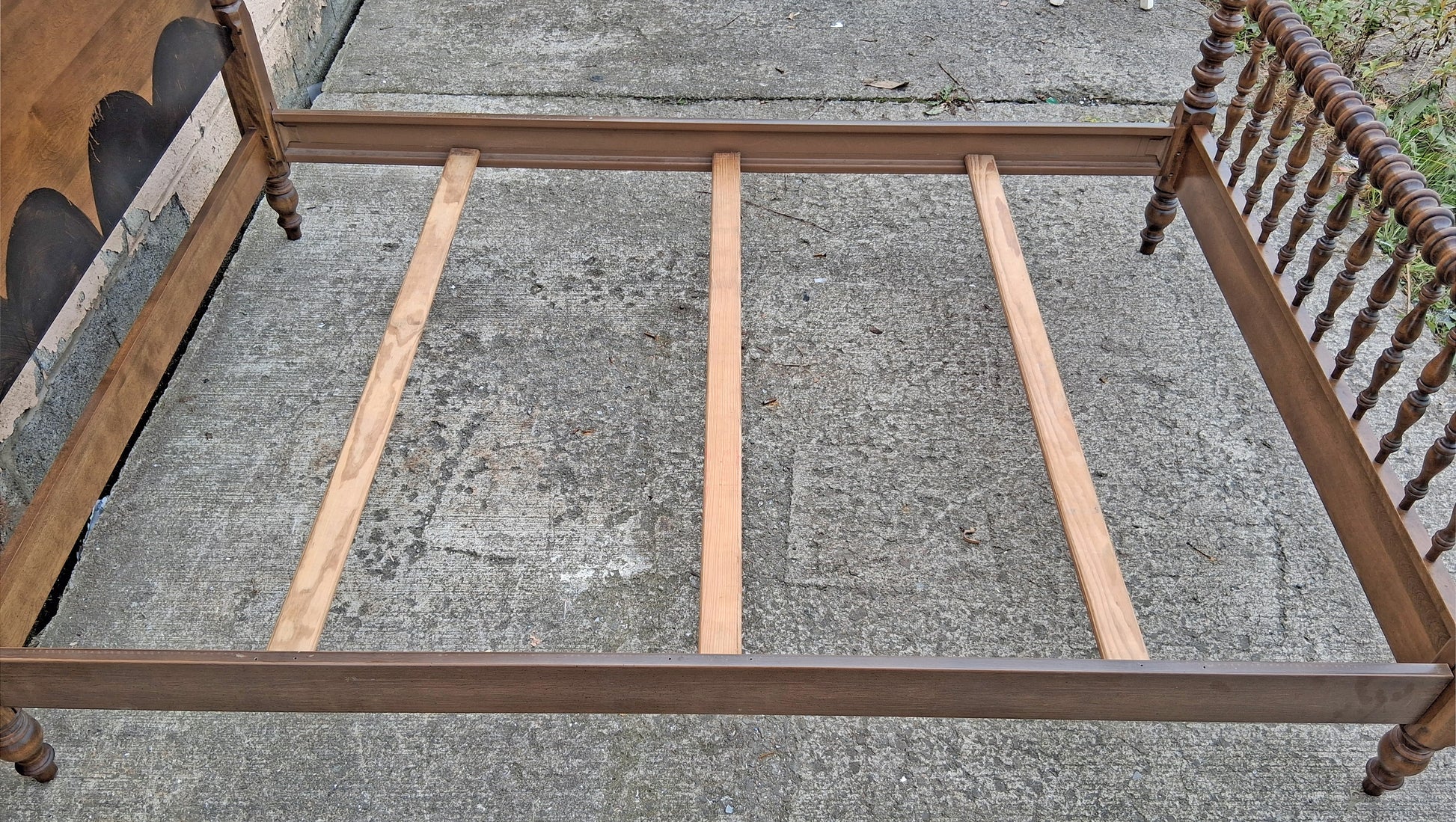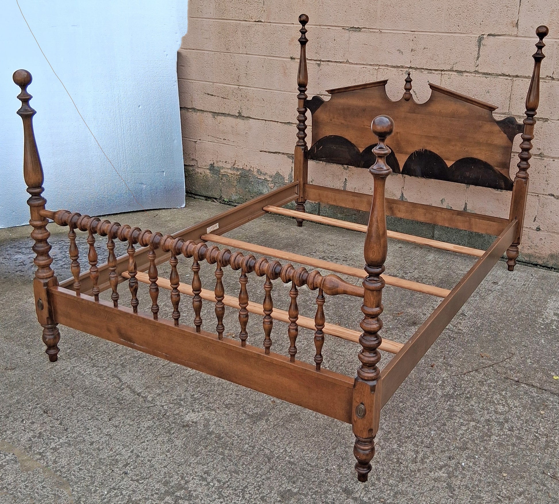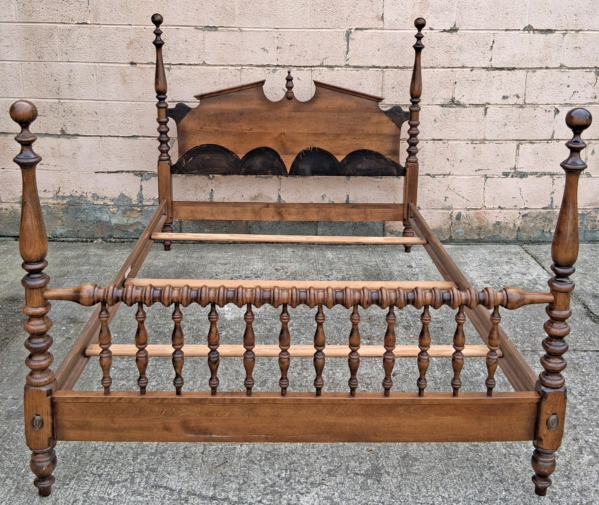 Vintage Antique Old Reclaimed Salvaged Ethan Allen Colonial Style SOLID Birch Wood Wooden Full Sized Poster Spool Bed Frame Head Foot Board
