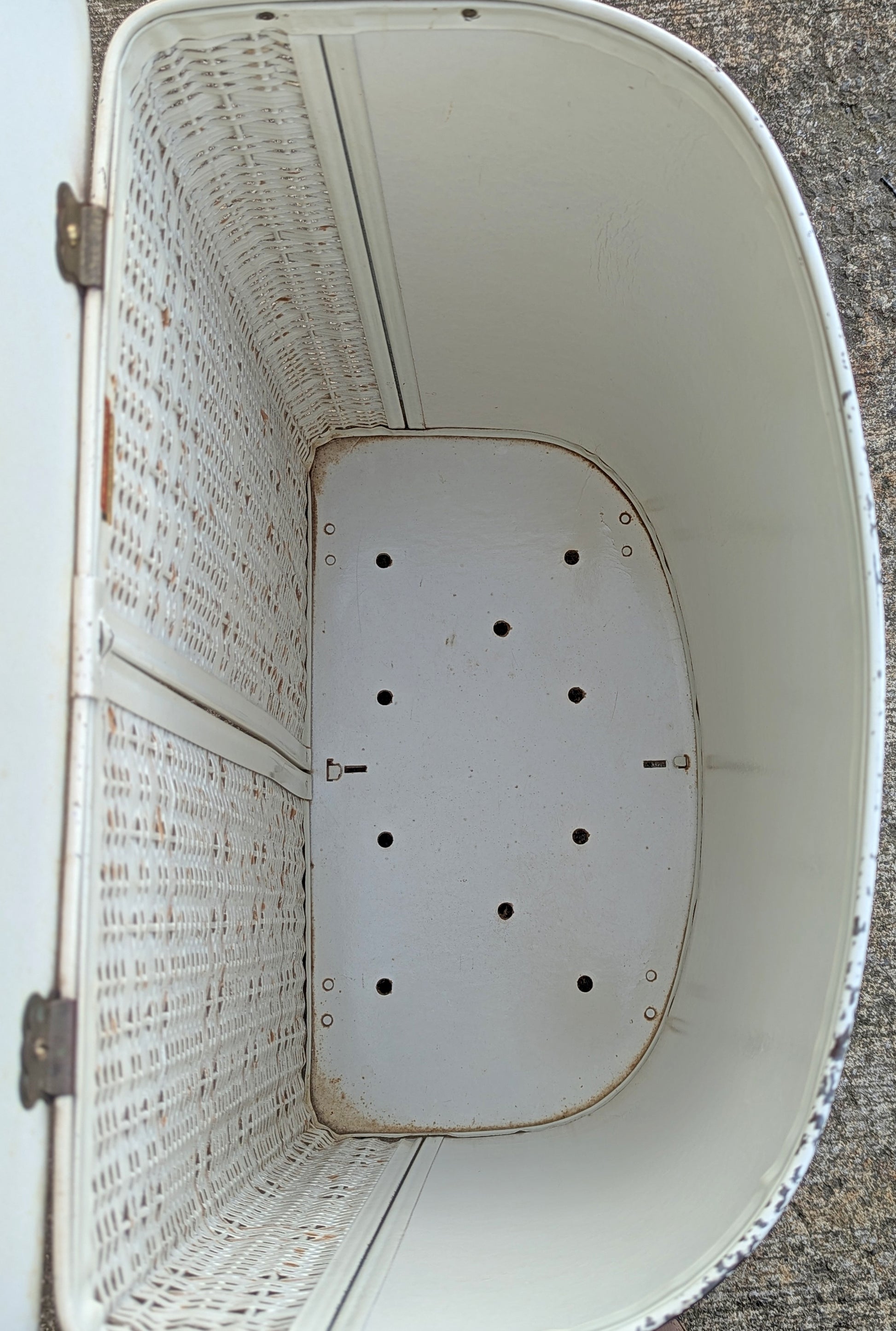 Vintage Antique Old Reclaimed Salvaged Pearl Wick Retro Mid Century Modern Laundry Clothes Clothing Hamper Storage Chest Bin Can