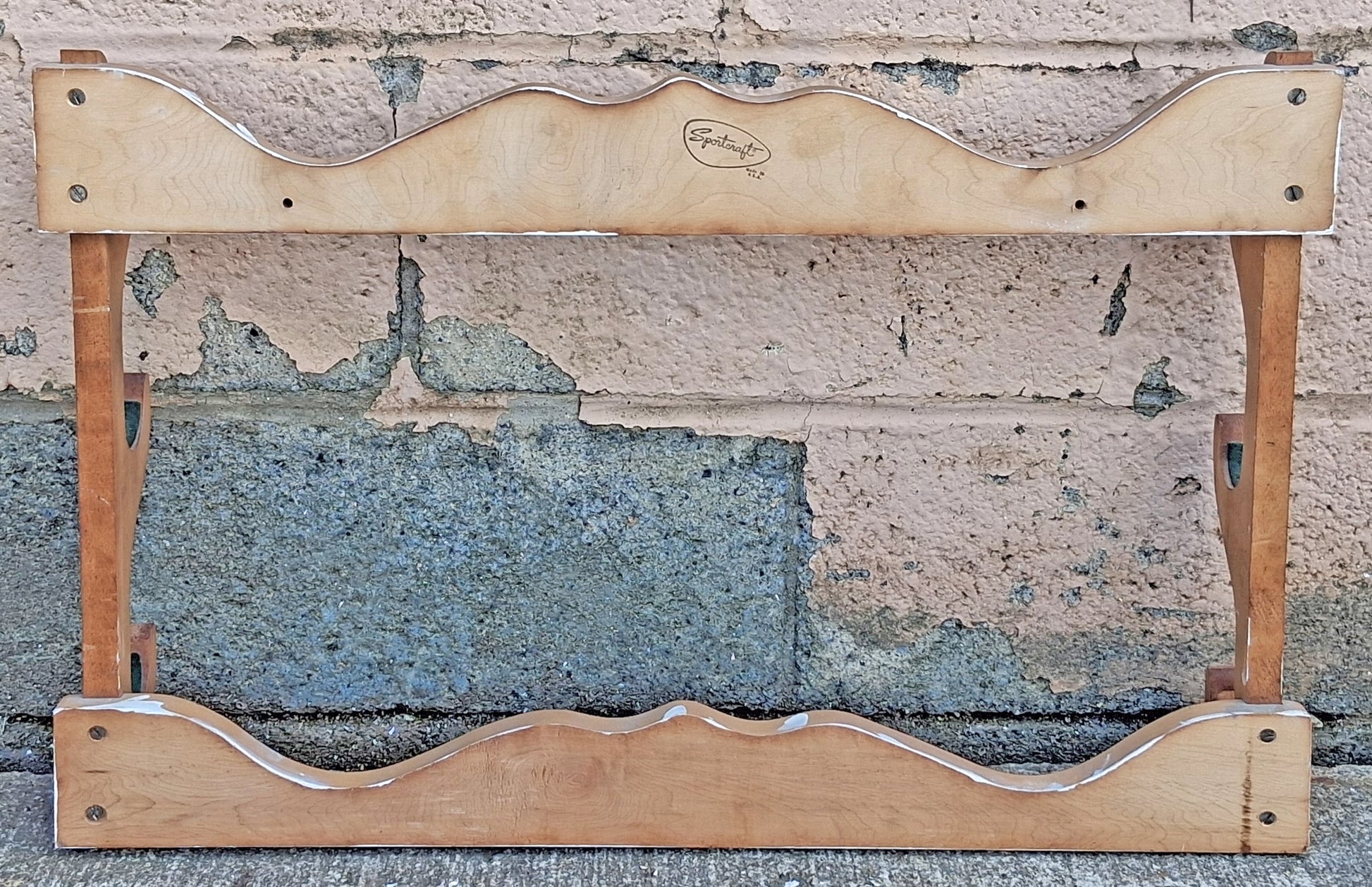 Vintage Antique Old Reclaimed Salvaged Sportcraft SOLID Wood Wooden Gun Rifle Rack Holder Wall Mounted Hanging Unit Shelf