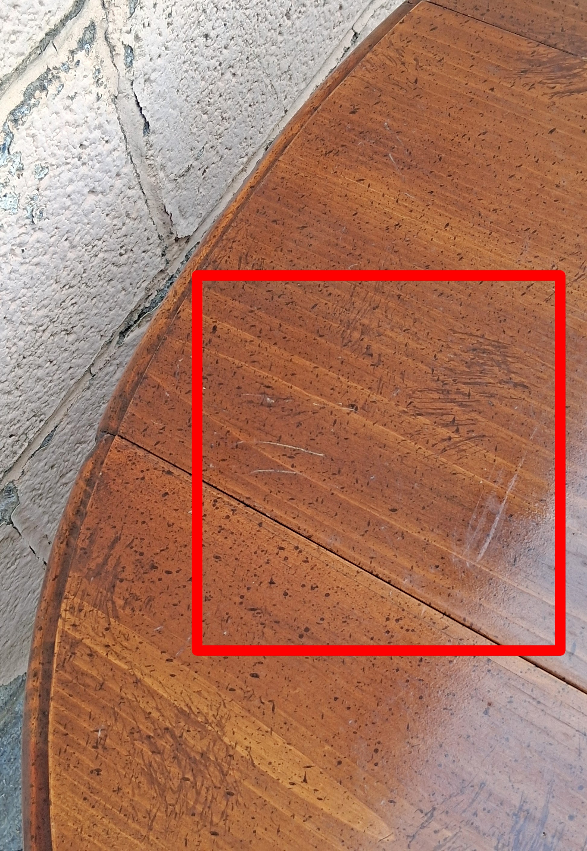 The former owner was the only owner and she took good care of it; it's in excellent structural condition and cosmetic condition. Expect the tiny nicks and light scratches which are commonly found on old, used furniture (The worst scratch we could find is in the last photo.); but there are no breaks, cracks, chips, dents, or gouges. The leaves open and close with ease, and the hinges are tightly fastened. The butterfly flaps also swing smoothly, without any jiggle or play. Our carpenter examined the table all over and found no repairs to make nor anything to reinforce. The table is strong, sturdy, and ready for a lifetime of service!