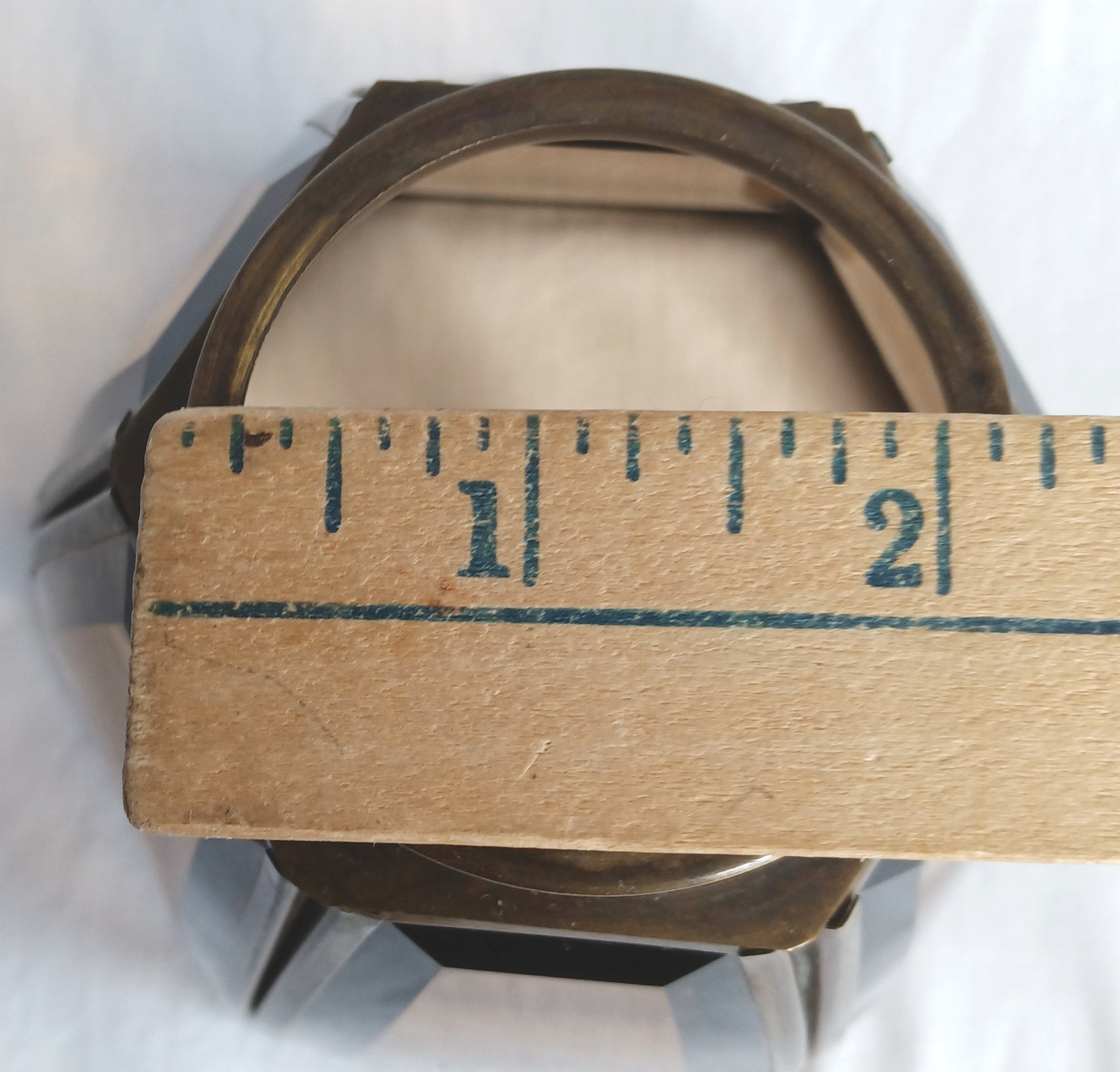 Measures approx.: 5” H x 5 ½” W. 2 1/8" across the fitter
