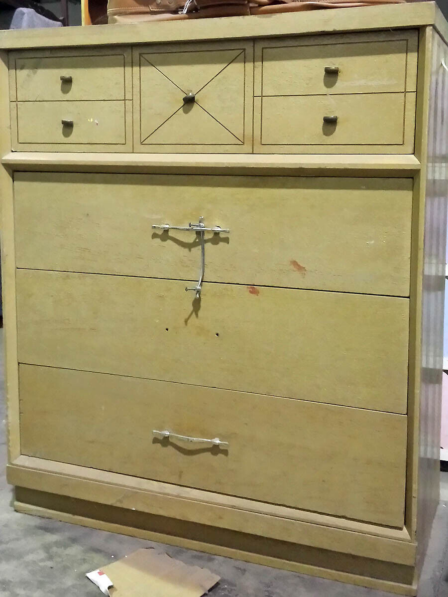 We had to downsize inventory in order to move into a smaller space. Unfortunately, much of the furniture that was in need of repair was discarded, but we made sure to at least salvage the cool, original hardware. This pull was removed from an old, 1960's dresser (see last photo; it's the one hanging from the top pull) that was salvaged locally.