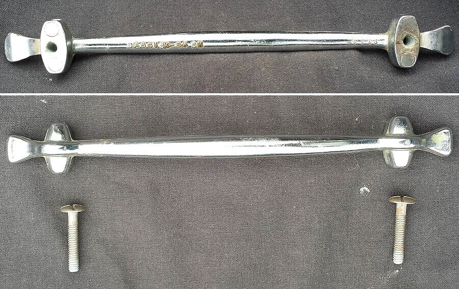 Rare, vintage, pull salvaged from Northeastern Pennsylvania. It was made by, "Bassick-Sack," of Winston-Salem, NC. It's made of a non-magnetic metal, and is brass and chrome plated. Two installation screws are included.